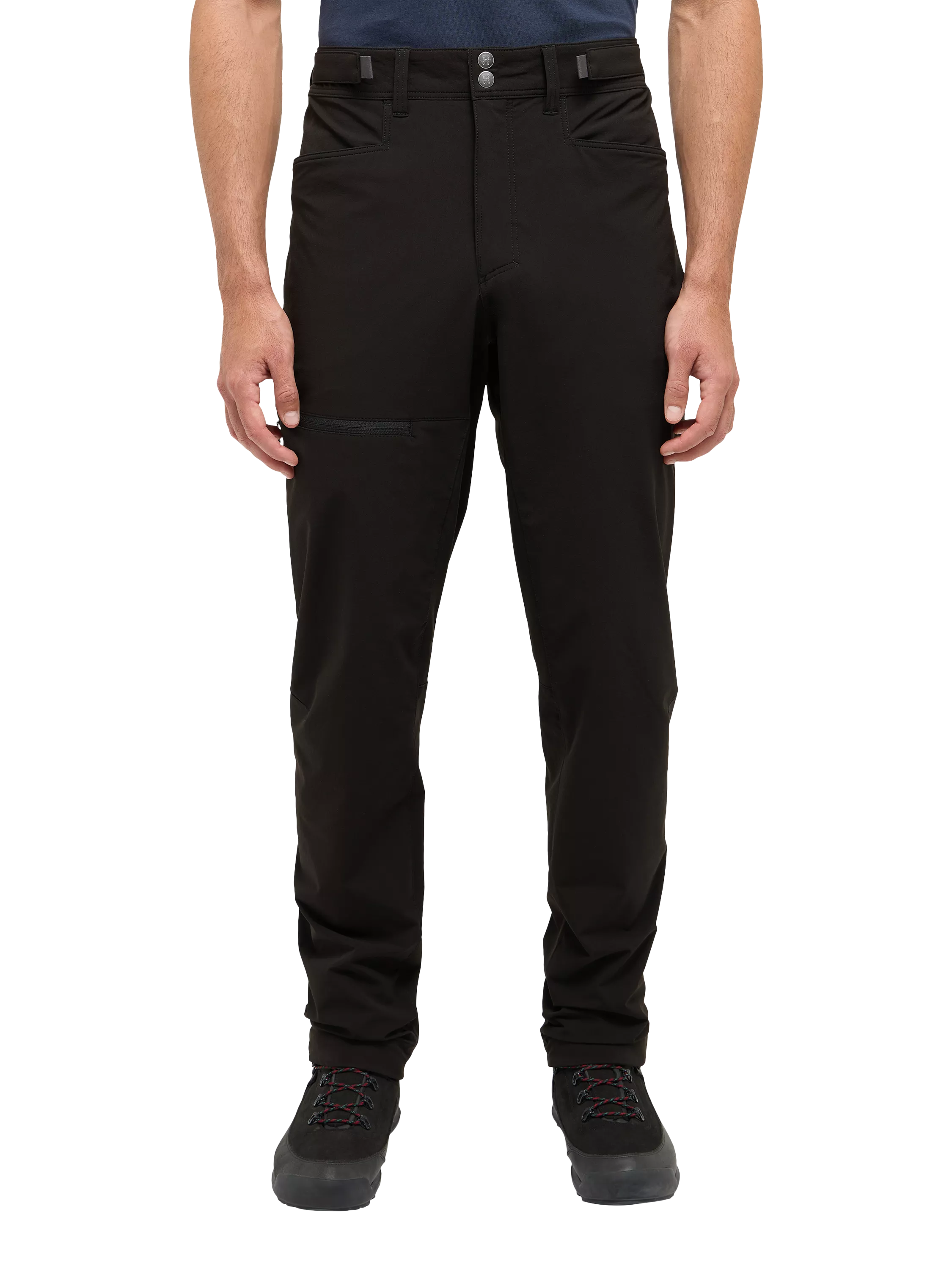 Stretchy and durable trousers for day hikes and everyday adventures. Haglöfs designed them to serve a versatile role in your outdoor kit. They're made out of a soft and highly flexible softshell fabric that repels water and dirt. The adjustable waistband and leg-ends offer customised comfort. They come with three practical pockets and a gear attachment loop.