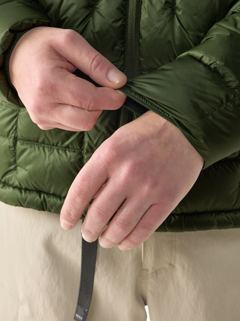 The Hede is a light and lofty down jacket designed for everyday outdoor use. Filled with 700 CUIN down, it provides a lot of warmth for its weight. The adjustable hood offers extra coverage when needed, while the H-shaped baffles and streamlined shape give it a modern and versatile look suitable for wearing from the trail to the town.