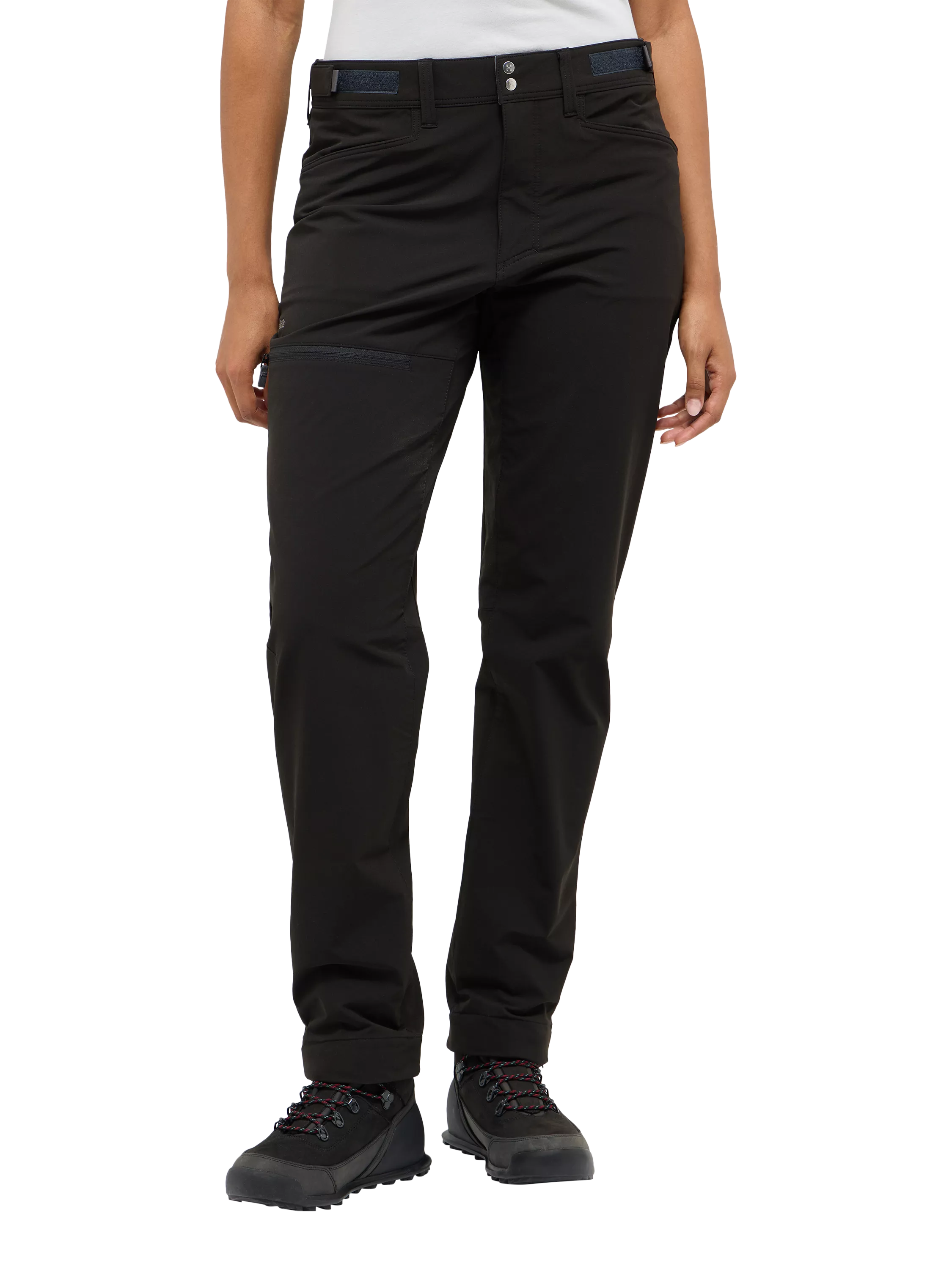Stretchy and durable pants for day hikes and everyday adventures. Haglöfs designed them to serve a versatile role in your outdoor kit. They're made out of a soft and highly flexible softshell fabric that repels water and dirt. The adjustable waistband and leg-ends offer customised comfort. They come with three practical pockets and a gear attachment loop.