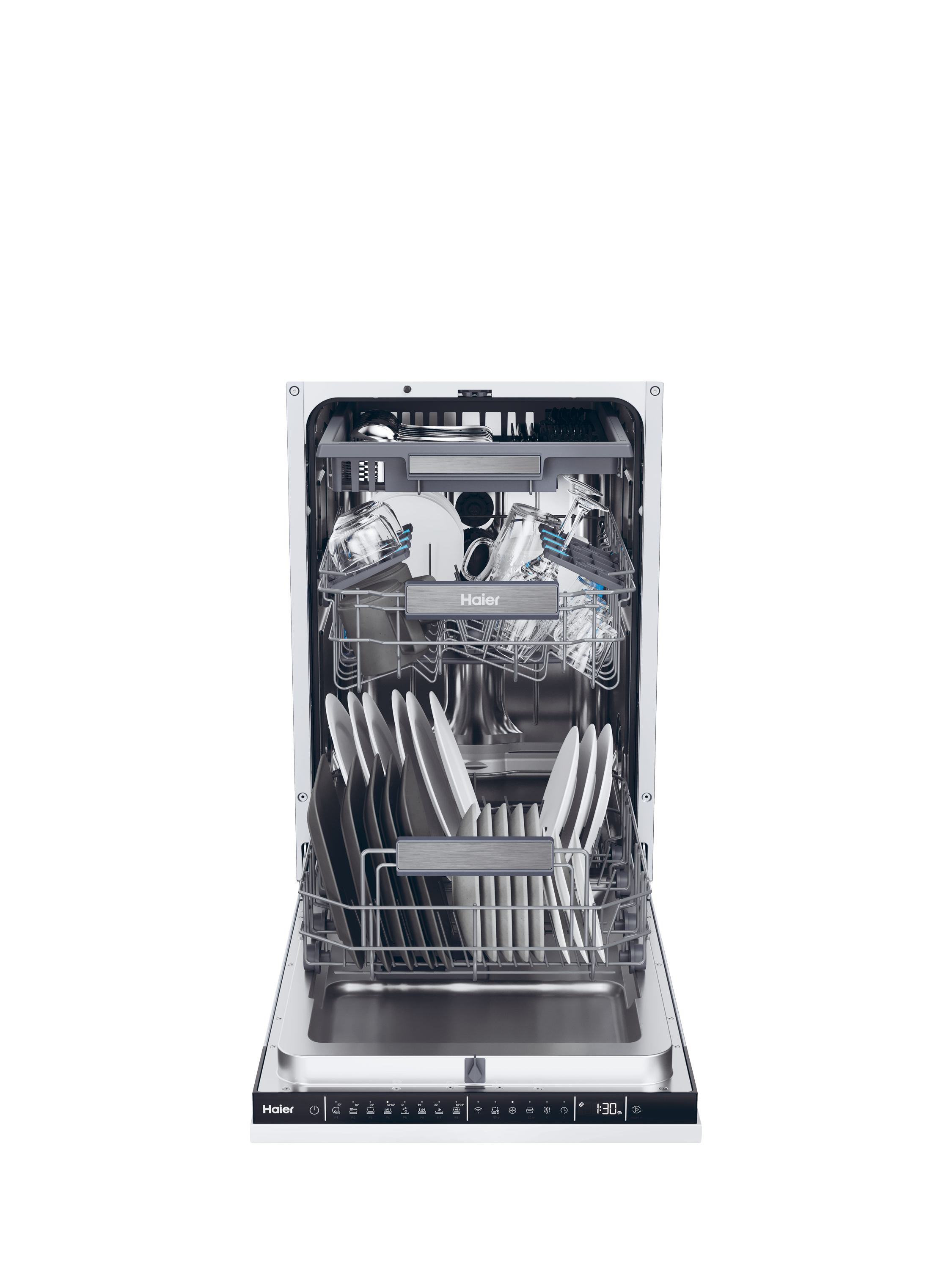 HaierXI1C3TB2FB-80 Integrated Dishwasher, Black Bezel