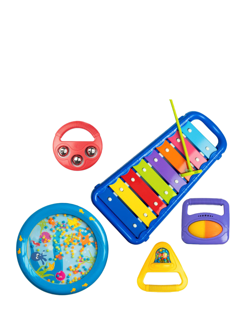 These vibrant instruments teach cause and effect and improve motor skills and hand-eye coordination, which aids your baby with many important activities such as feeding, running and climbing. Musical play also enhances creativity and self-expression, which helps children express themselves and cope with their feelings and improves problem-solving and concentration skills to name a few!