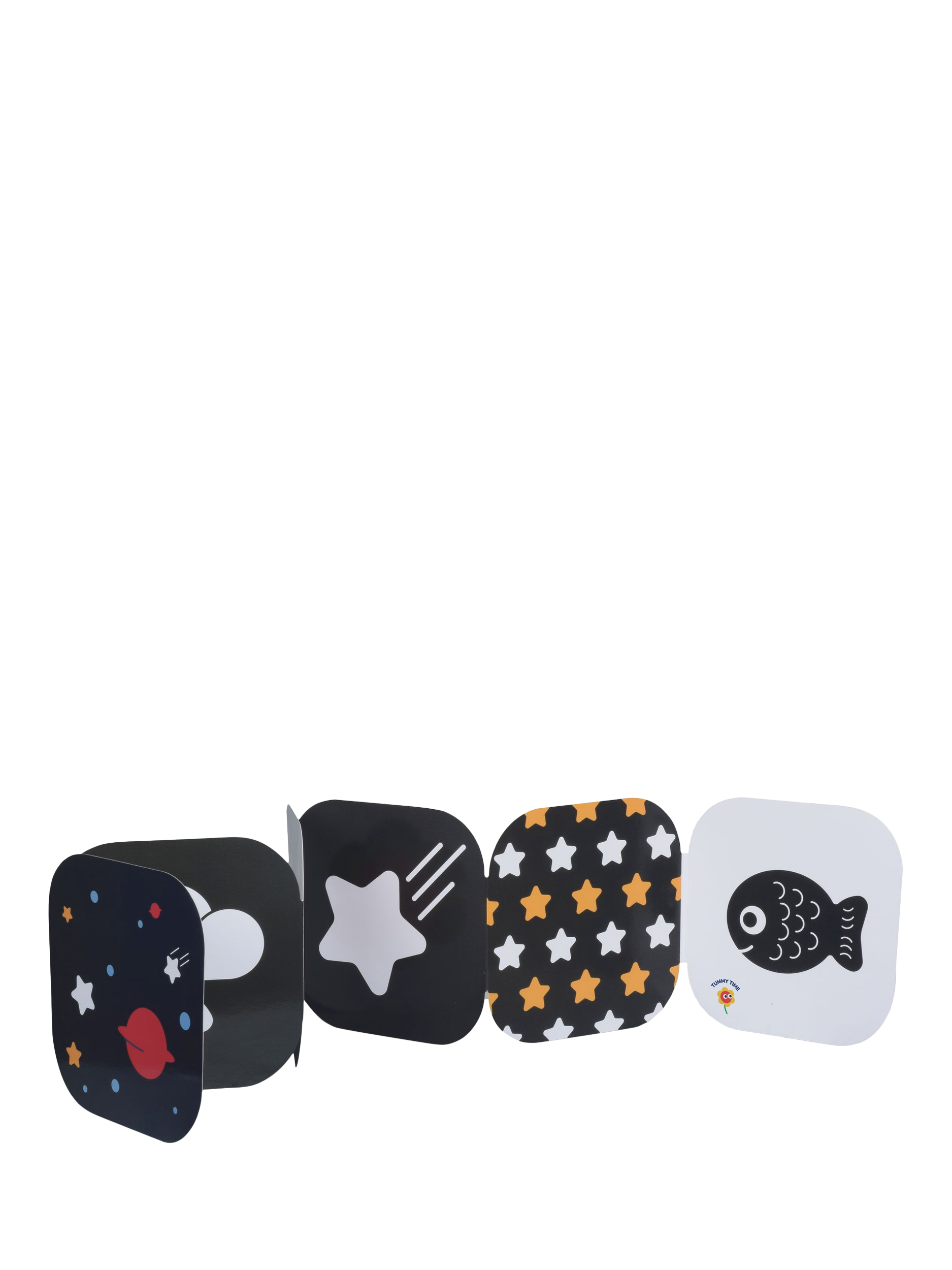 The contrasting bright beads in the night sky-themed Shaking Drum not only draw attention but also create a soothing sound as they roll across the drum. With a rounded base, the drum can rock and sway, creating movement of the beads and shapes and teaching little ones about cause and effect. Baby’s motor skills will be further aided by the unique Spinning Tube which creates its own motion once pushed to roll across the floor, using momentum from the ball inside the tube. Not only does this make an enticing sound as it spins, but it also encourages young children to reach out and eventually, as they grow, to try and crawl after it. If that wasn’t enough, this Tummy Time Set also includes a double-sided folding tummy time card that can be easily taken on the go to keep little ones visually entertained.