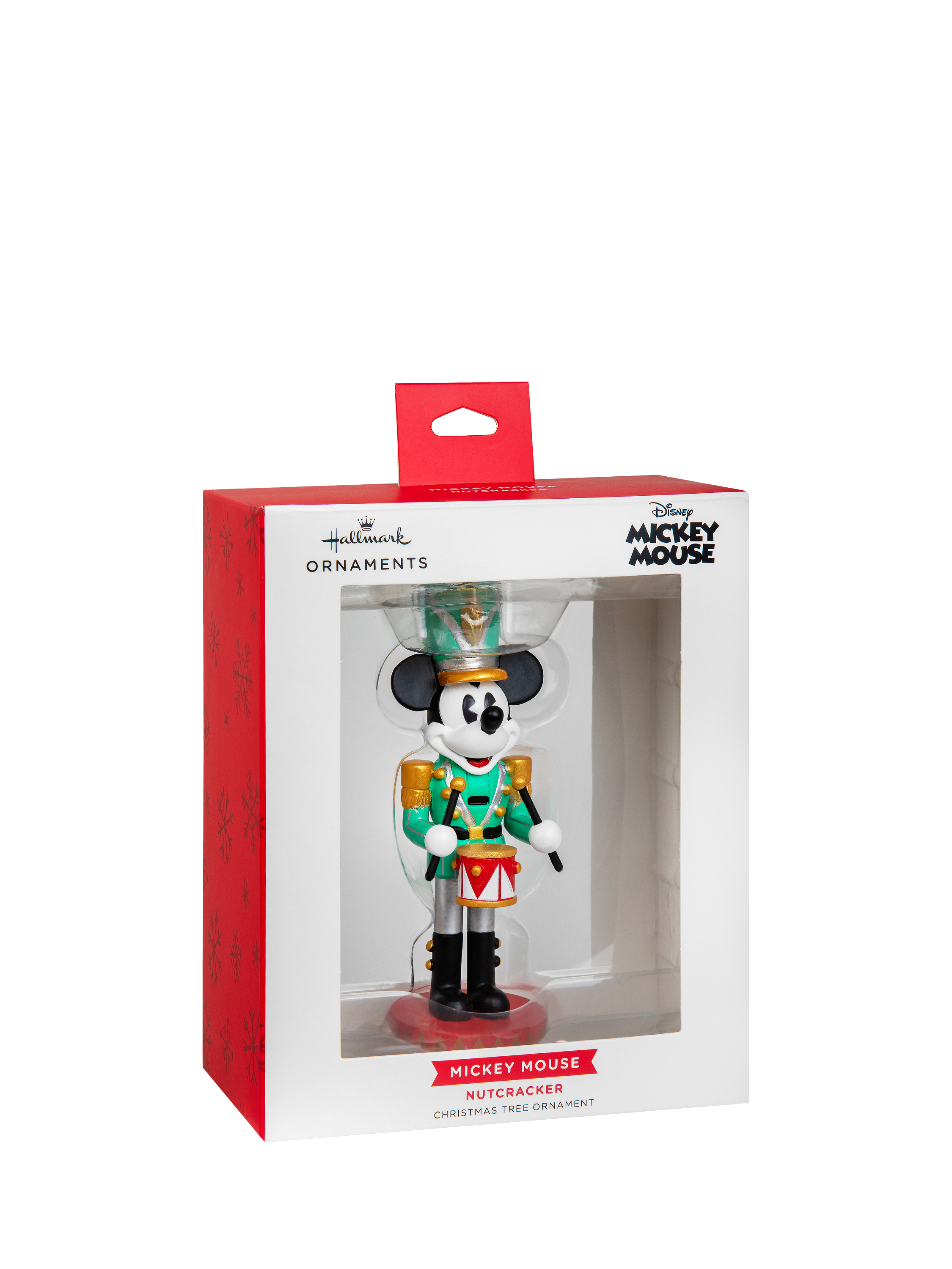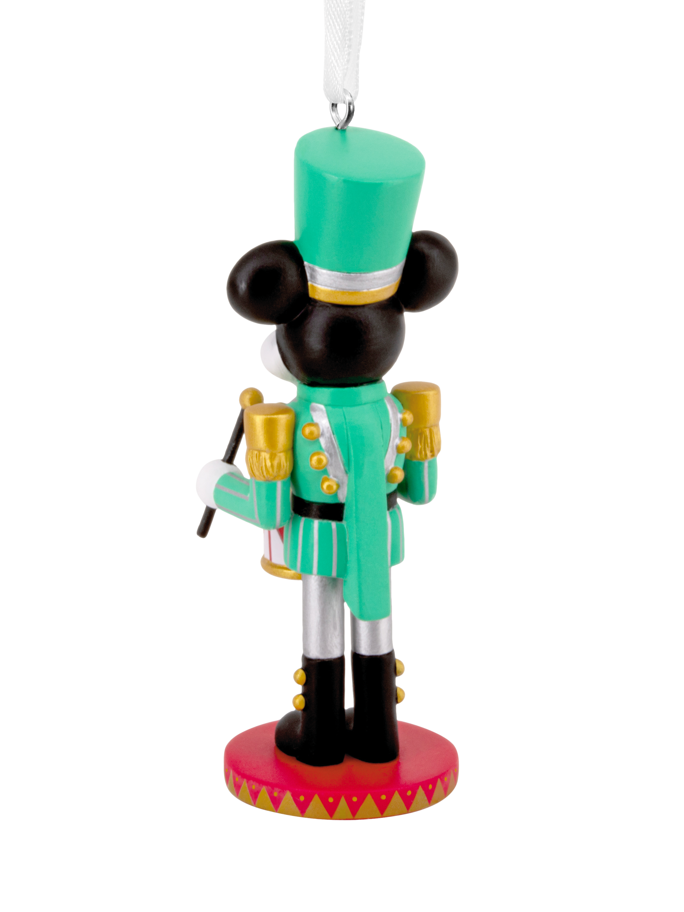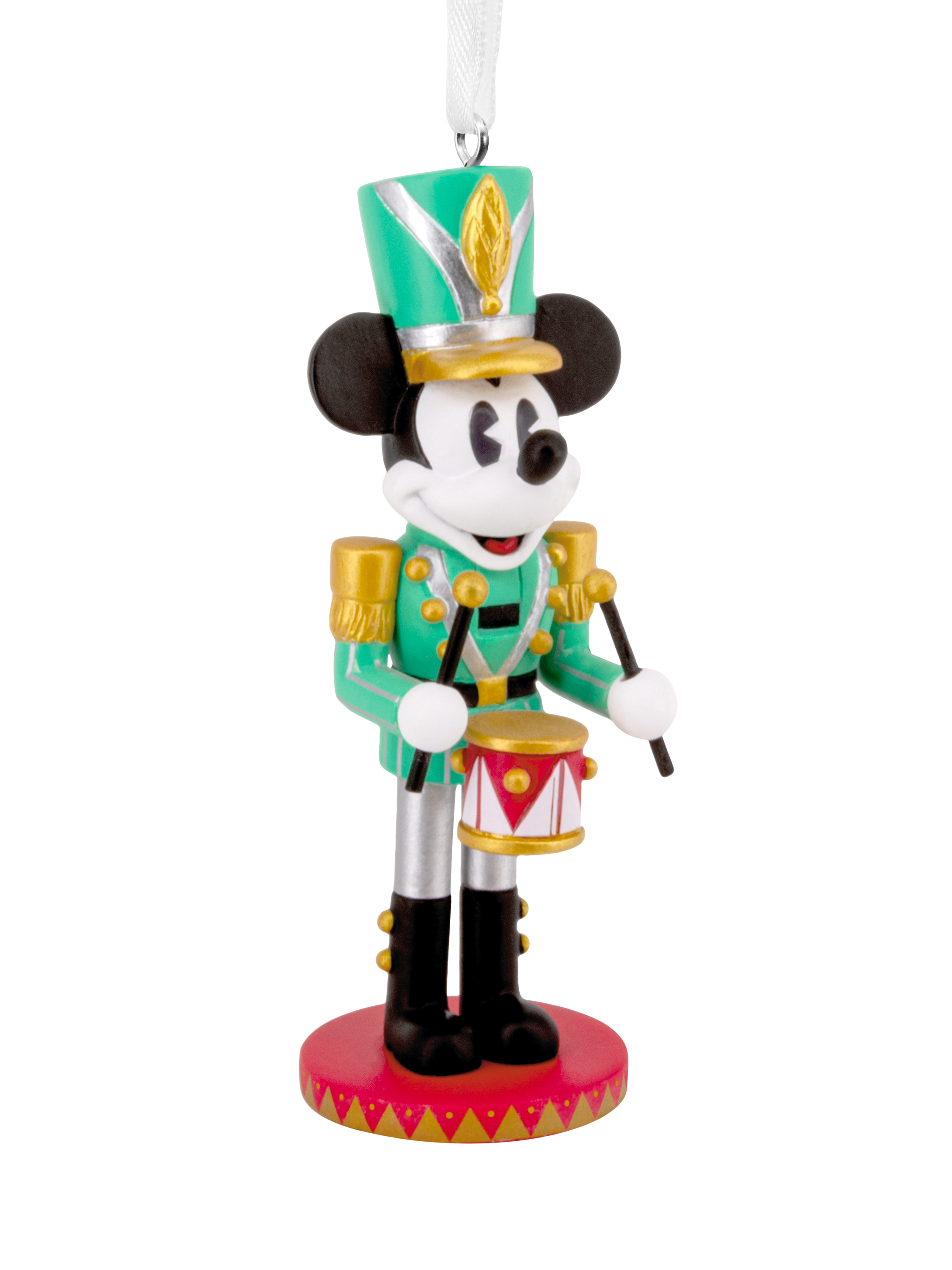 This tree decoration is made from hardwearing resin and features Disney's Mickey Mouse in a green drummer's uniform design. It comes complete with a hanging loop and white ribbon.