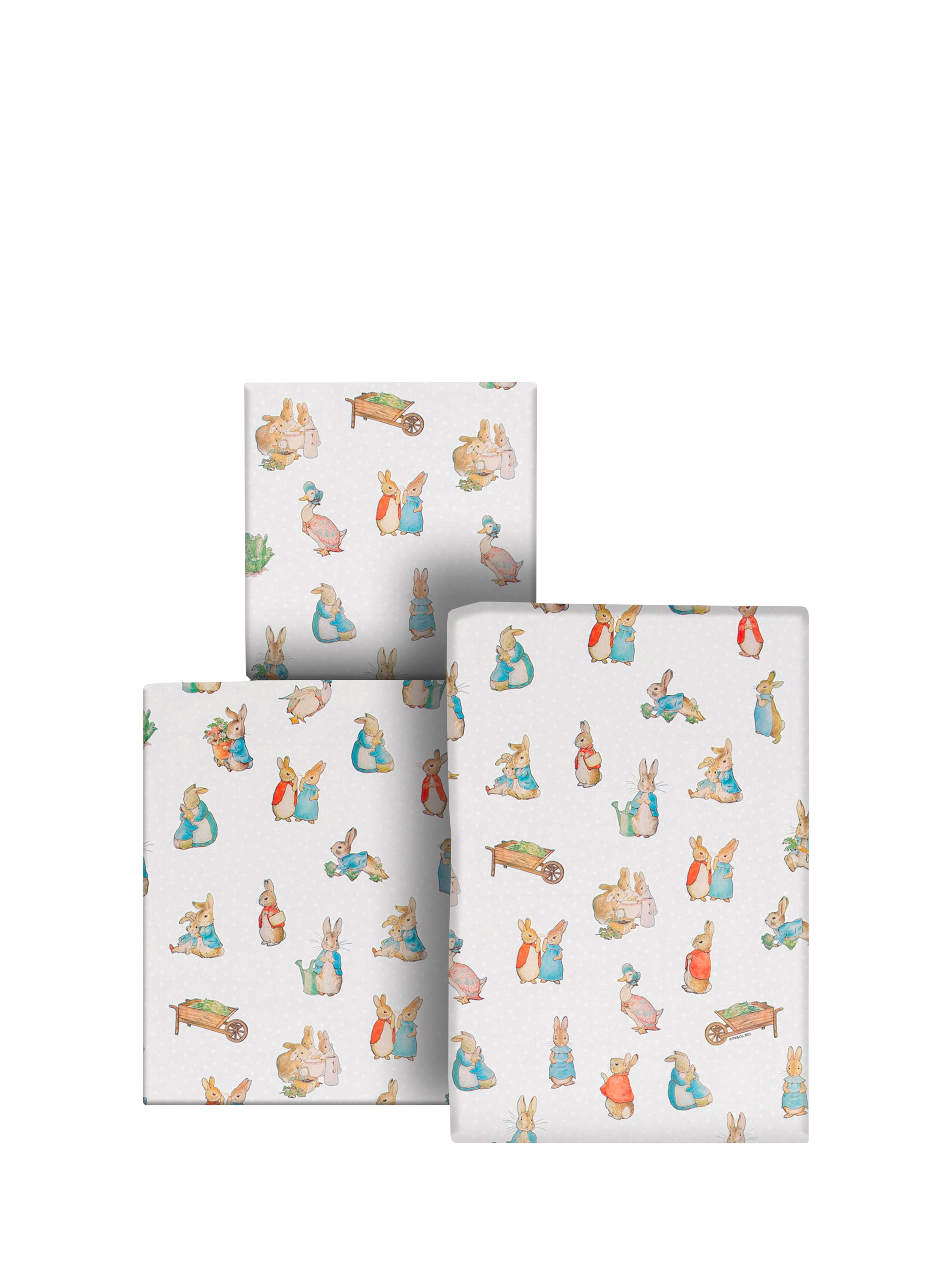 This adorably illustrated Peter Rabbit™ wrapping paper is perfect for a variety of occasions, from birthdays to Christenings and more. It features classic illustrations from the Beatrix Potter Books and includes Flopsy, Mopsy, Cotton-tail, Jemima Puddle-Duck and Mrs Rabbit. With an easy open tear strip, simply pull the tab down the full length of the wrap to open. Extra paper is provided to protect the roll. This product is fully recyclable.