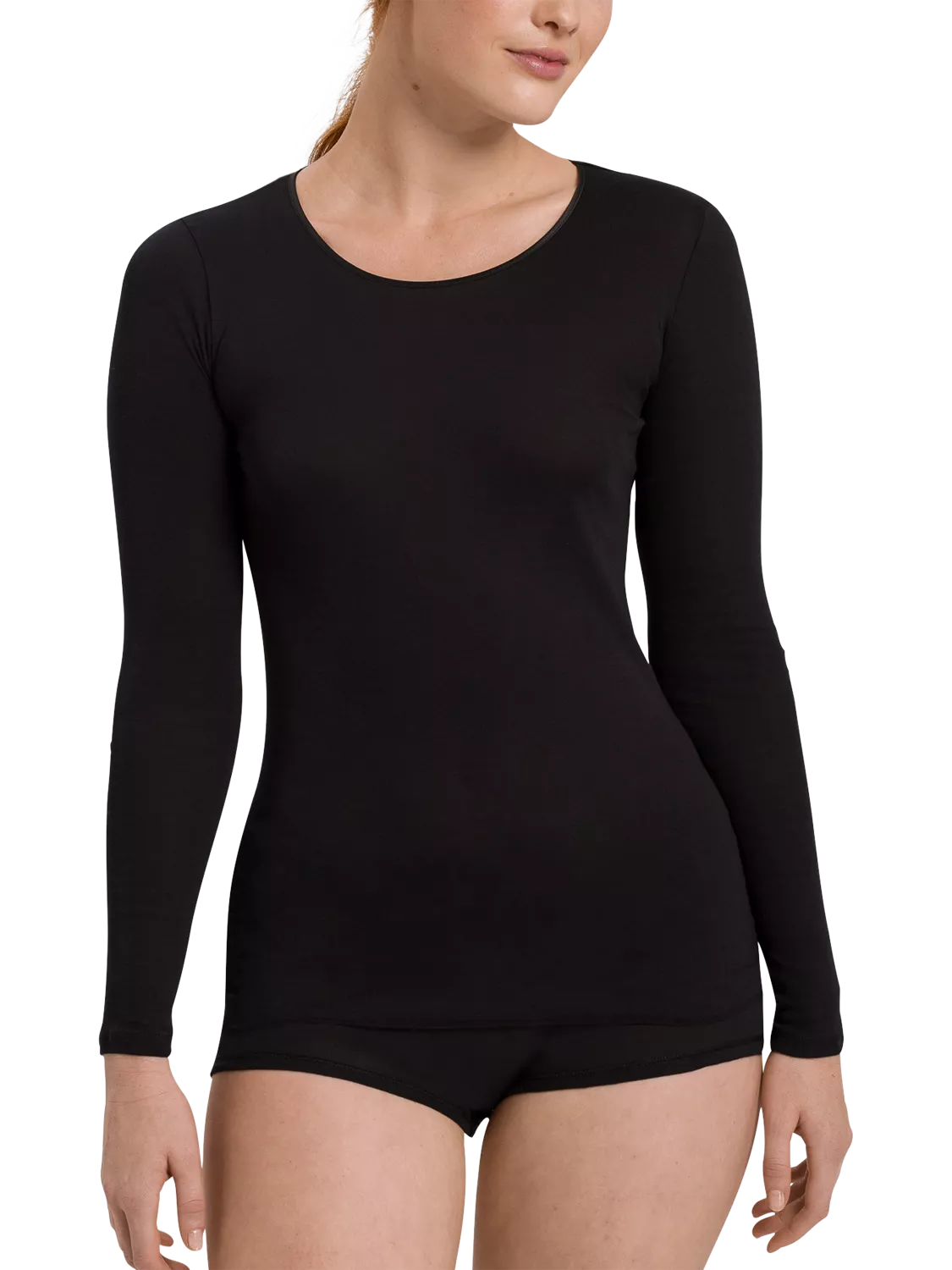 This elegant long-sleeved T-shirt from Hanro's Cotton Seamless range is part of the new Hanro basics generation - a collection of pieces that are crafted from 100% cotton, which was produced using an innovative, new mercerisation process to create a velvety soft surface.