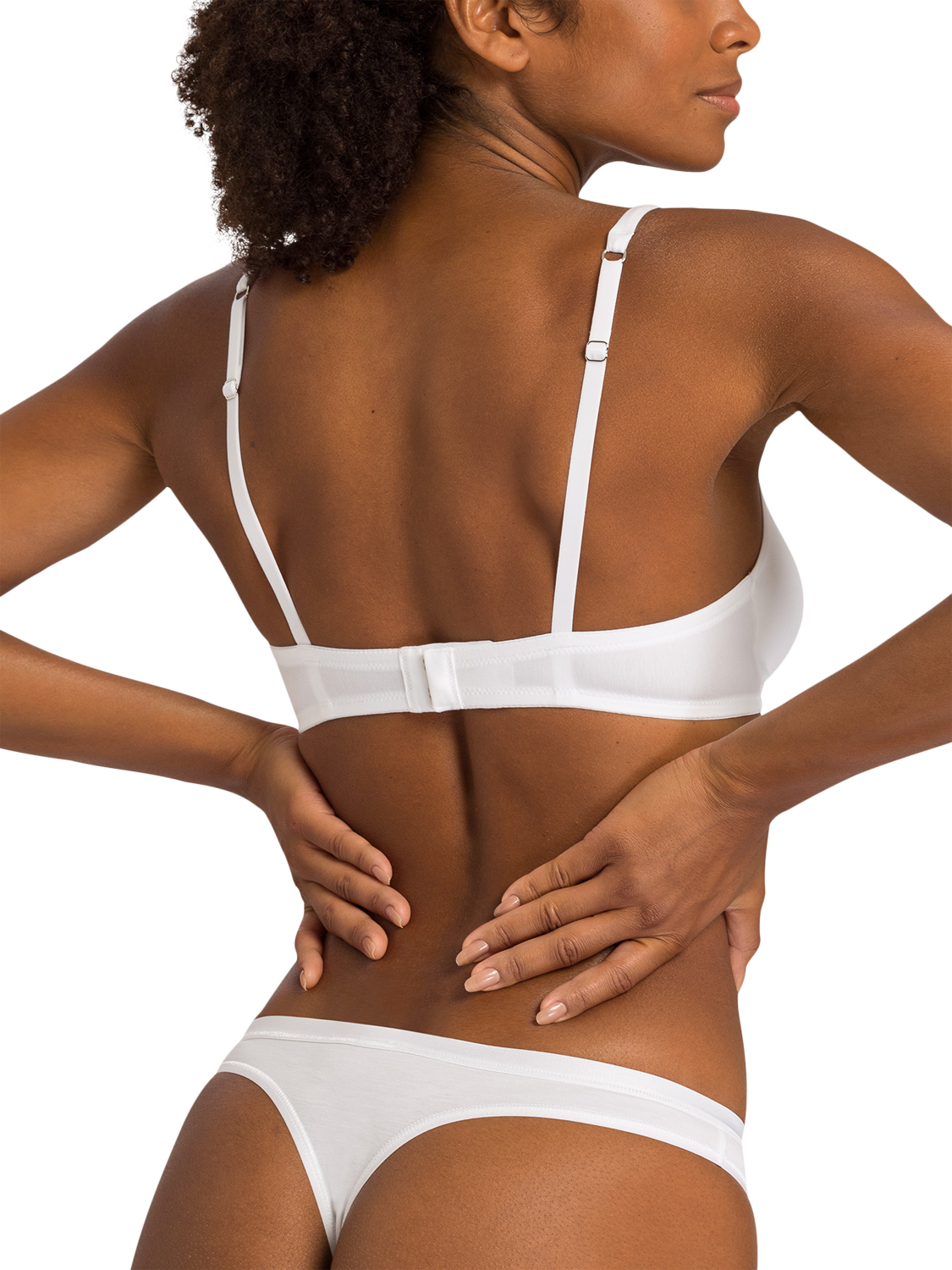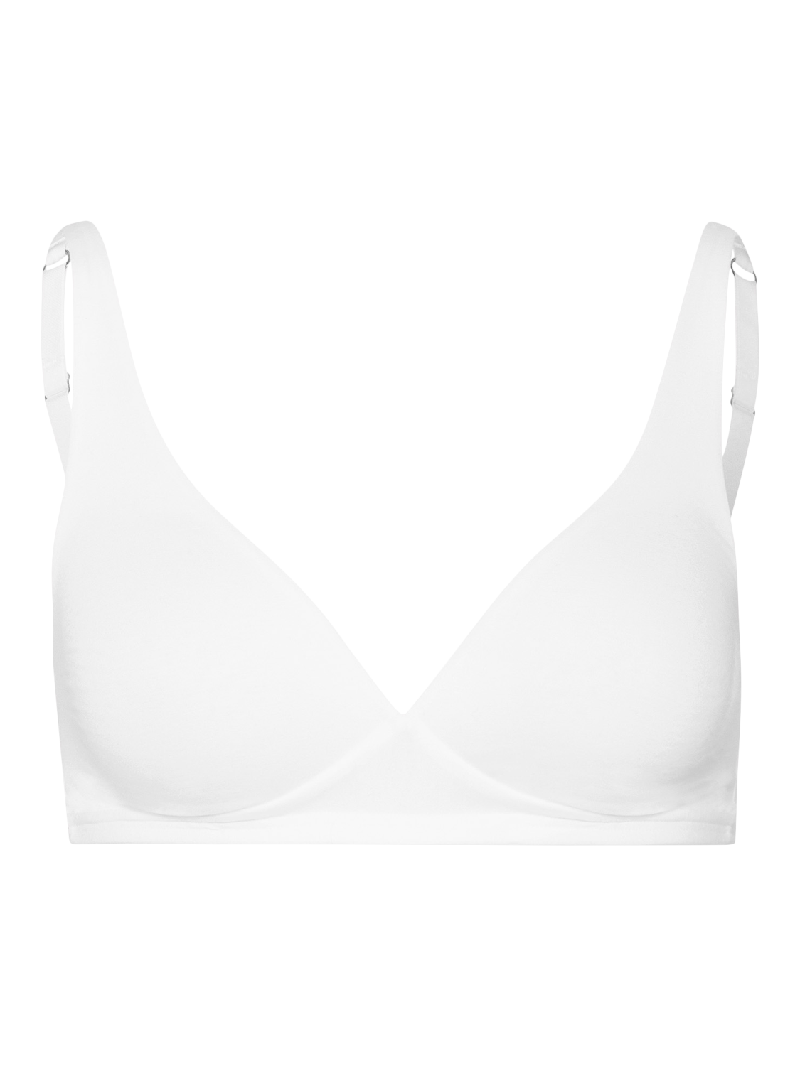 It's designed with support that will accommodate up to an E-cup size, offering a sleek, smooth shape beneath clothes. Made from an incredibly soft cotton-elastane blend, it features an elasticated trim, adjustable straps for a custom fit, seamless sides, and a regular bra back closure with 2-hook fastening. The opaque cups are double-moulded for a perfect fit.