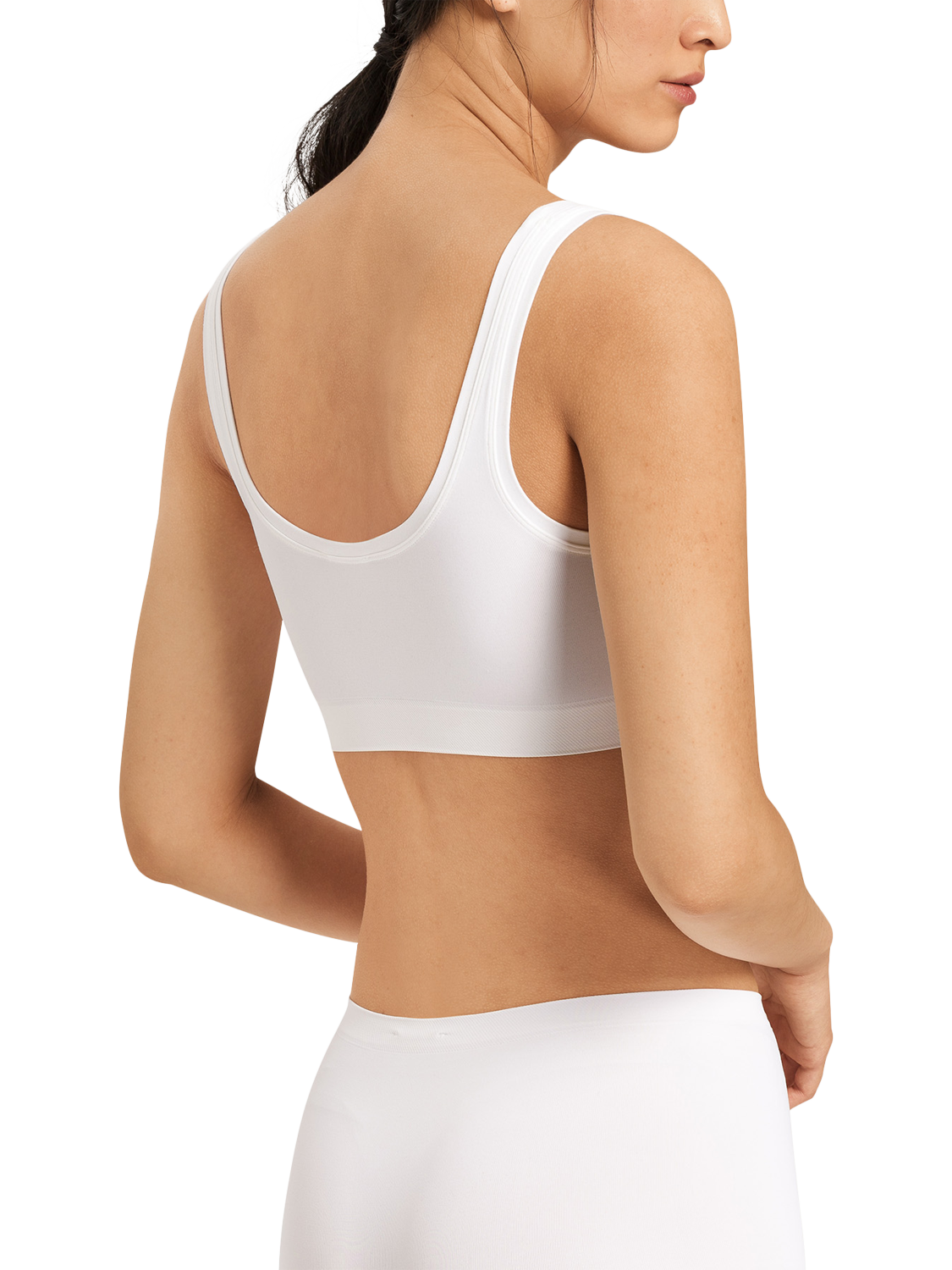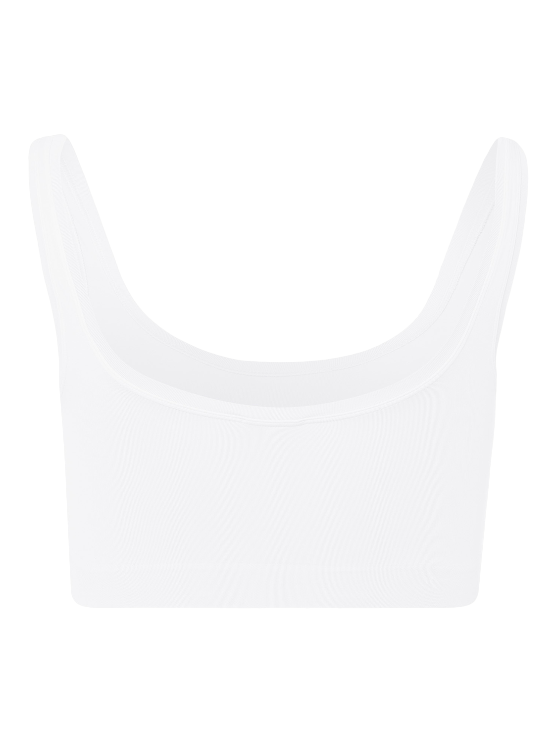This sporty and stylish crop top features wide straps for added comfort, tailored from a breathable mix of microfibre and elastane fabrics for a custom and stretchy fit, featuring fine rib trim around the neckline for a smooth look, a stretchy hemmed bottom adds support for the bust.