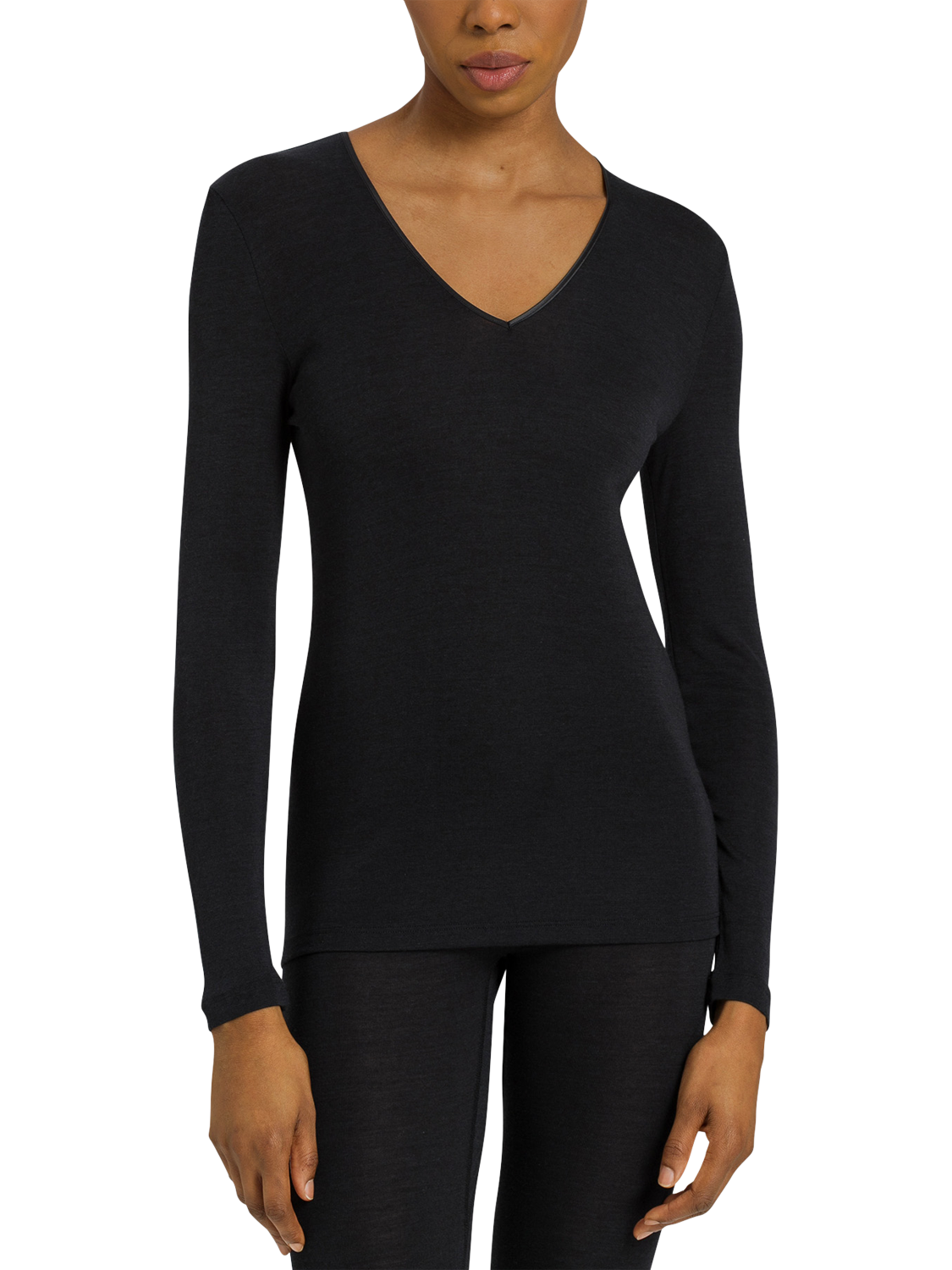 This top is comfortable to wear, with seamless sides and a flat satin trim. Ideal for use all year round, this top also features full-length sleeves, seamless sides and an elegant V-neckline with a flat rib trip to ensure a custom fit.