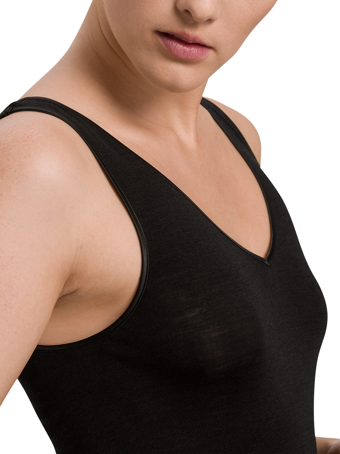 With built-up tank straps, seamless sides and a flat satin trim along the flattering slight V-neckline, it is versatile enough to wear on its own and also ideal for layering underneath a blouse or jumper.