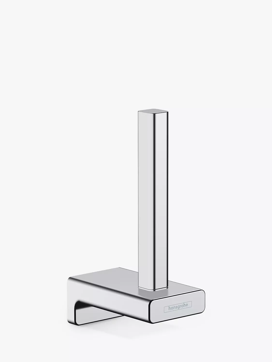 The AddStoris toilet roll holder from Hansgrohe adds visual and functional flair to a bathroom or WC. With this modern and minimalist design, a metal wall-mounted vertical spindle holds the loo roll, keeping it handy.