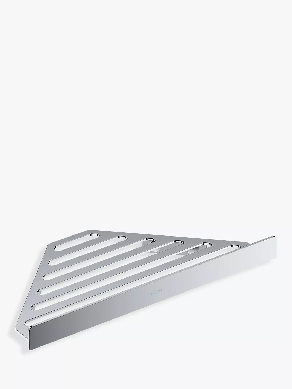 A stylish AddStoris wall-mounted corner shelf, adding visual and functional flair to a shower. With this modern and minimalist design from Hansgrohe, shampoo and other toiletries are always within easy reach.