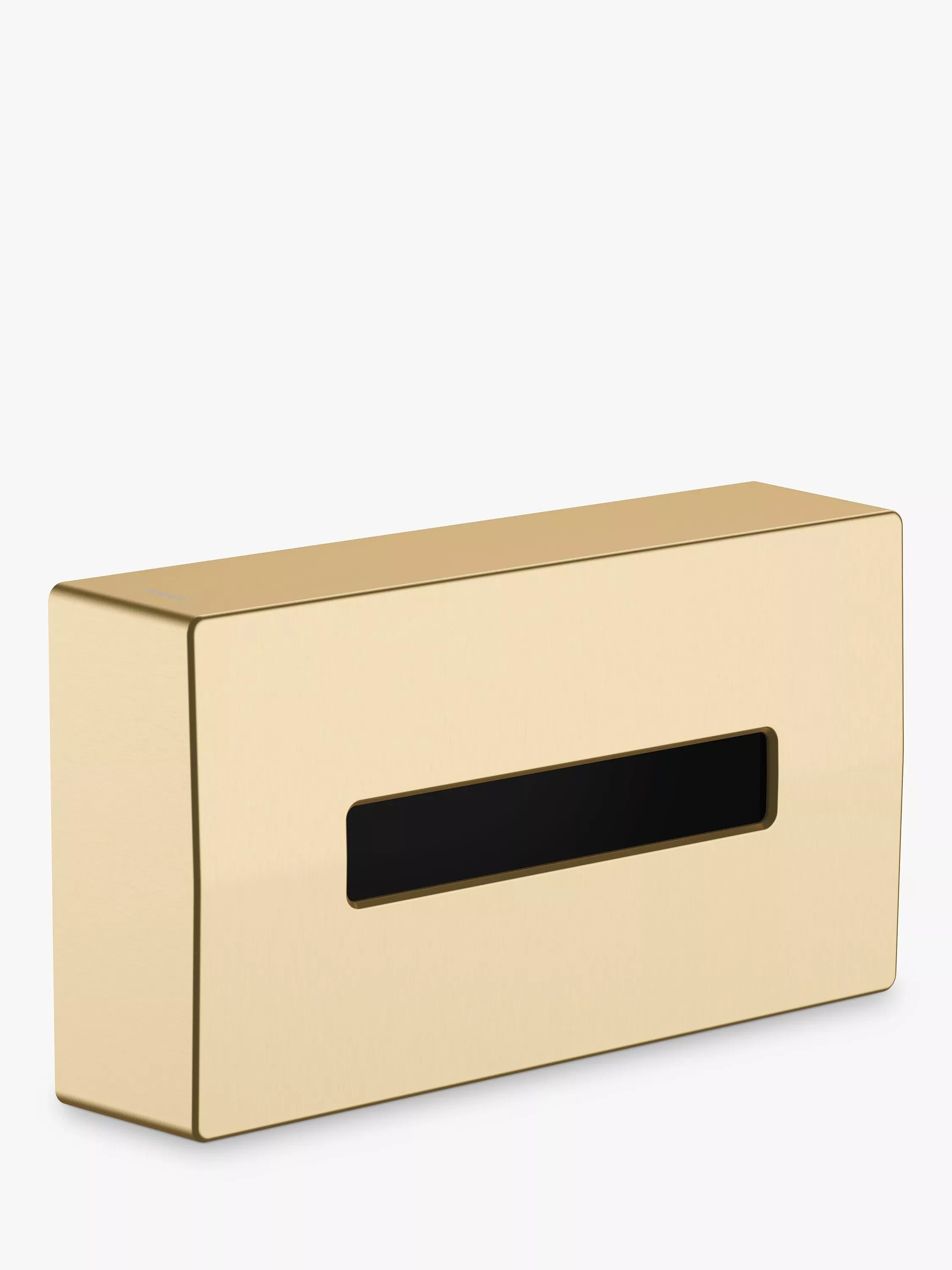 A stylish AddStoris tissue box, adding visual and functional flair to a bathroom. This modern and minimalist design from Hansgrohe can house standard tissue packs up to a size of approximately 26 x 14 x 6cm.