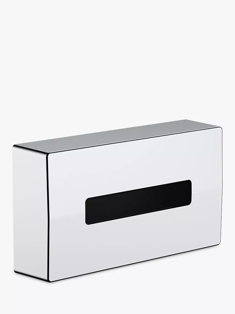 A stylish AddStoris tissue box, adding visual and functional flair to a bathroom. This modern and minimalist design from Hansgrohe can house standard tissue packs up to a size of approximately 26 x 14 x 6cm.