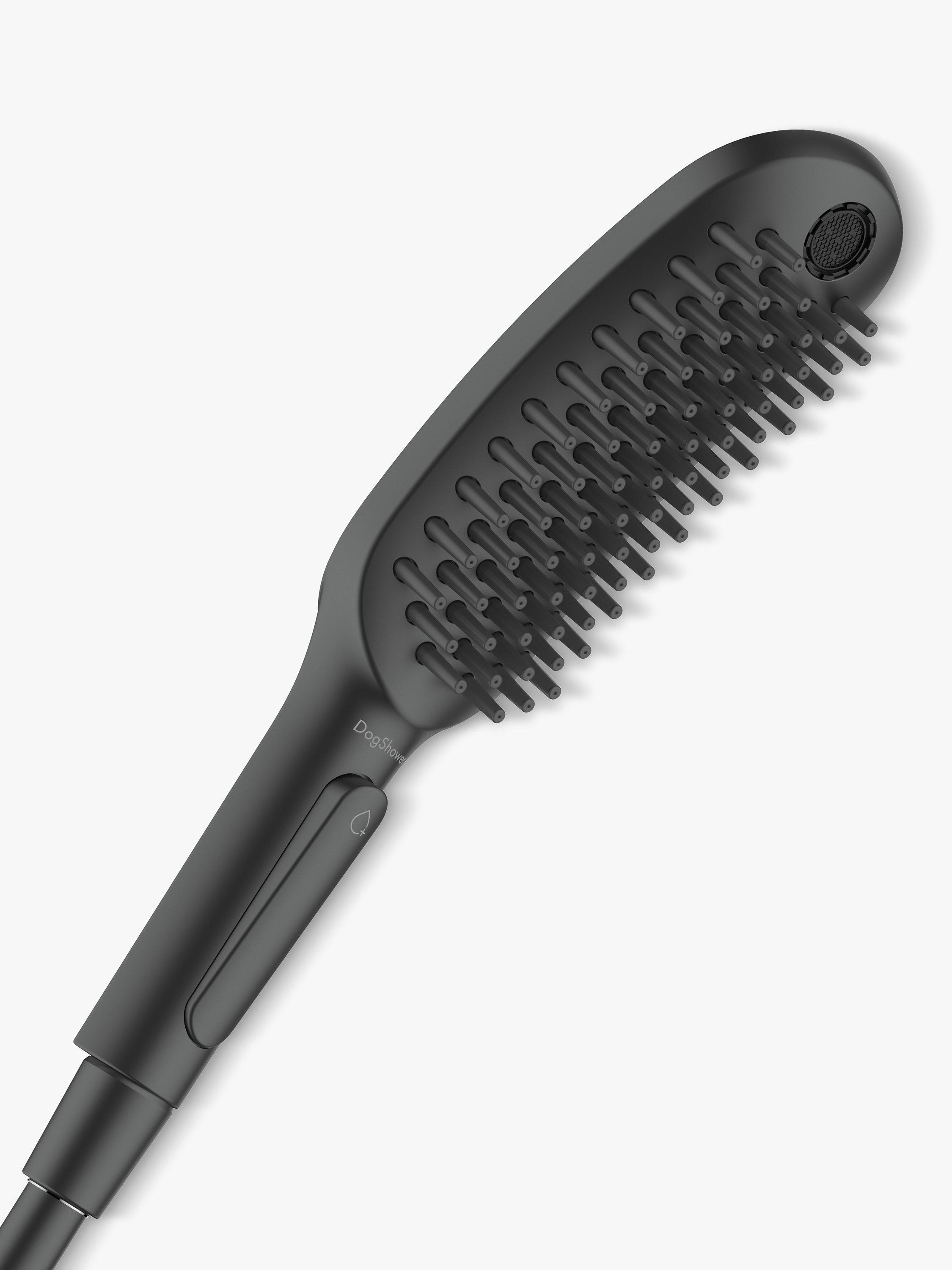 Helpful features make it easier to bath your dog. The ergonomically shaped handle makes washing effortless. To use, stroke your dog with the brush-shaped shower head. The flexible nozzles will give your dog a nice, calming massage. The button on the underside of the handle controls the water flow. When pressed, the full amount is released. The water volume is automatically reduced if you let go of the shower to leave hands free and protect against flooding.