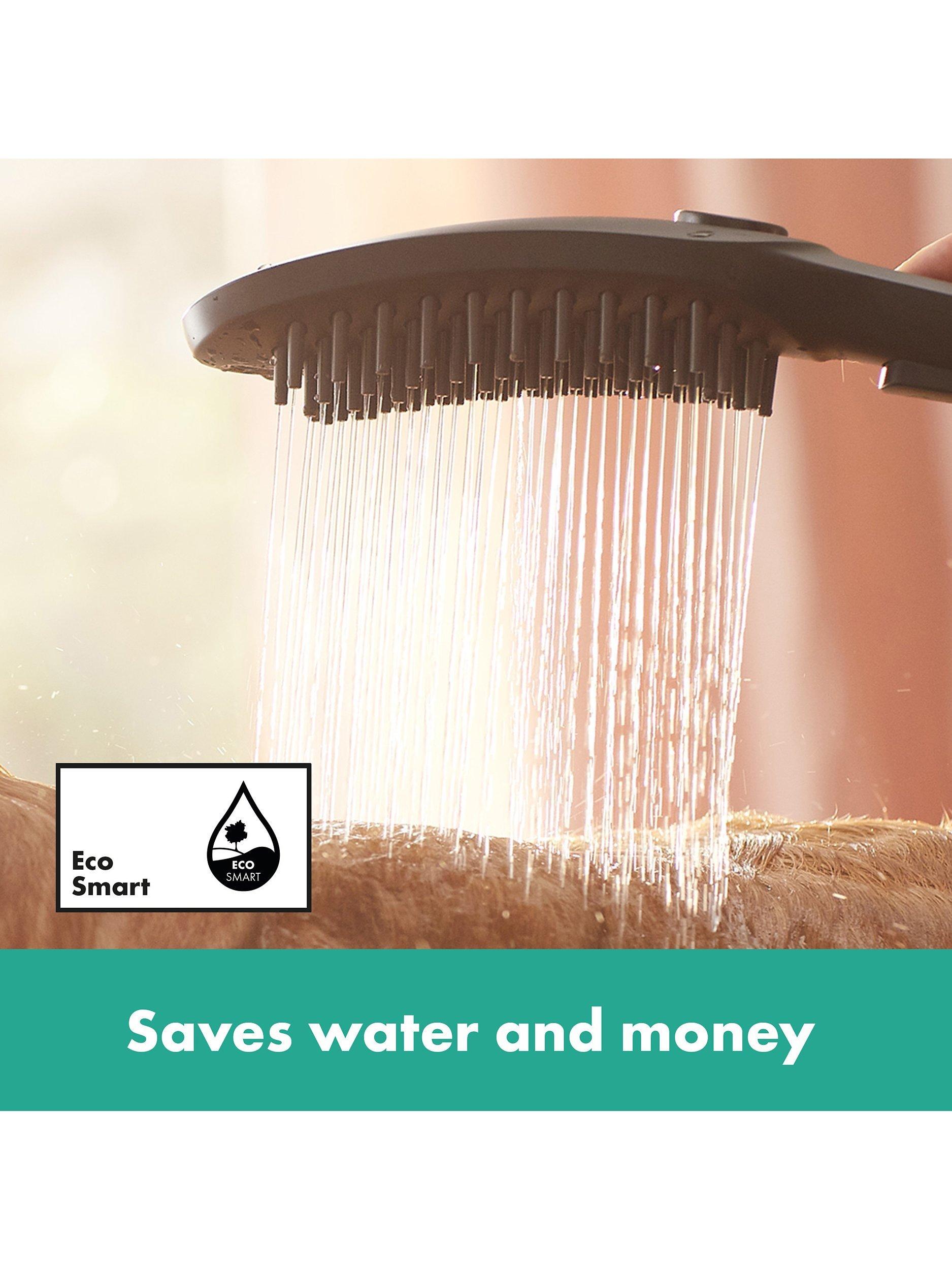 At the top of the shower head, the focussed jet for paws helps with targeted paw cleaning. It removes road salt and dirt between the toes. The gentle jet for the legs uses the front part of the shower and cleans efficiently. The jet for your dog's coat is the length of the entire spray disc. It is a luxurious water jet that pampers your pooch. The extra-long, flexible nozzles help the water to work its way deep into the undercoat to effectively and thoroughly rinse out shampoo and can reduce skin irritations. You can switch between the jet types at the touch of a button using tried-and-tested Hansgrohe technology.