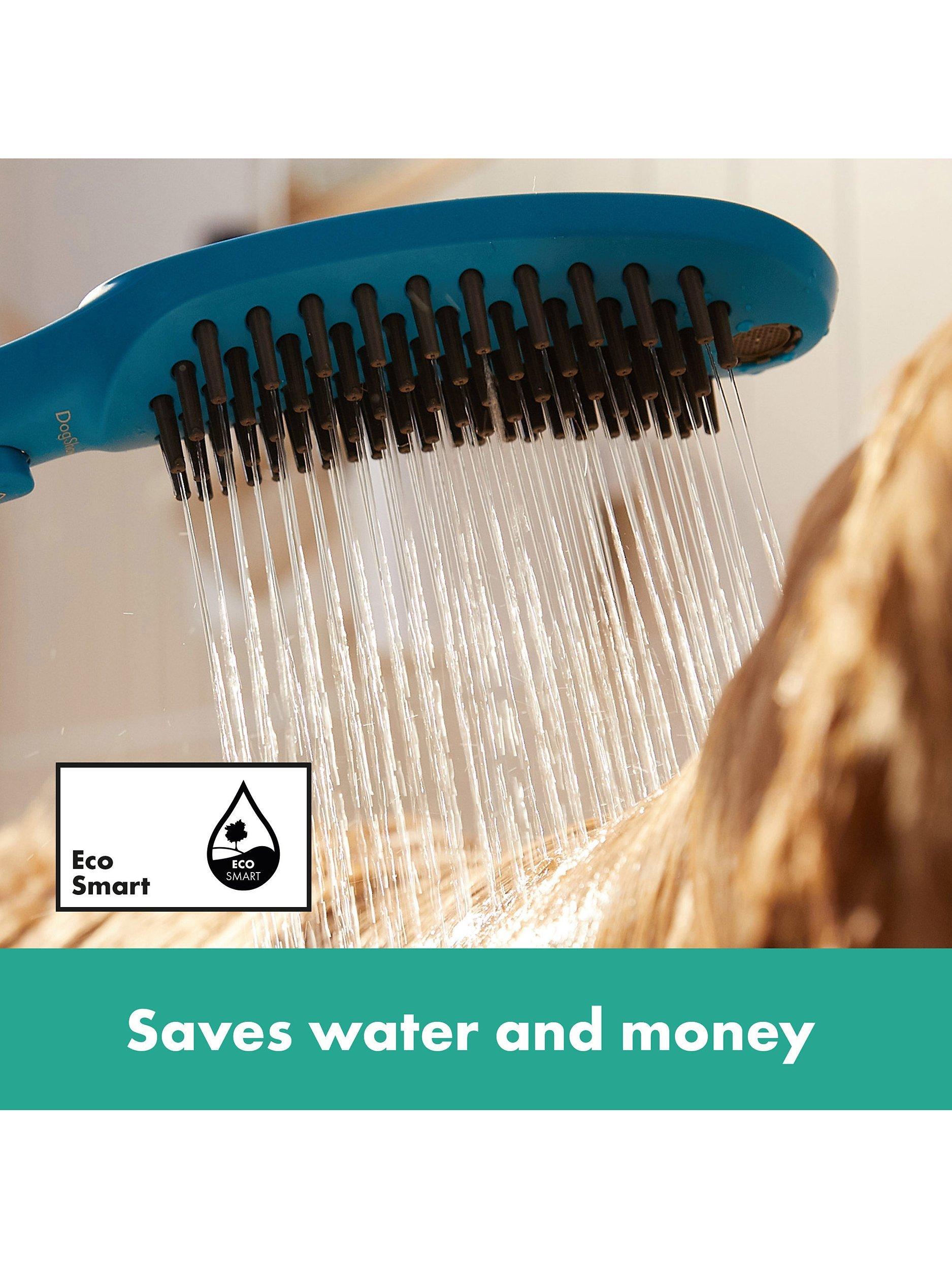Helpful features make it easier to bath your dog. The ergonomically shaped handle makes washing effortless. To use, stroke your dog with the brush-shaped shower head. The flexible nozzles will give your dog a nice, calming massage. The button on the underside of the handle controls the water flow. When pressed, the full amount is released. The water volume is automatically reduced if you let go of the shower to leave hands free and protect against flooding.