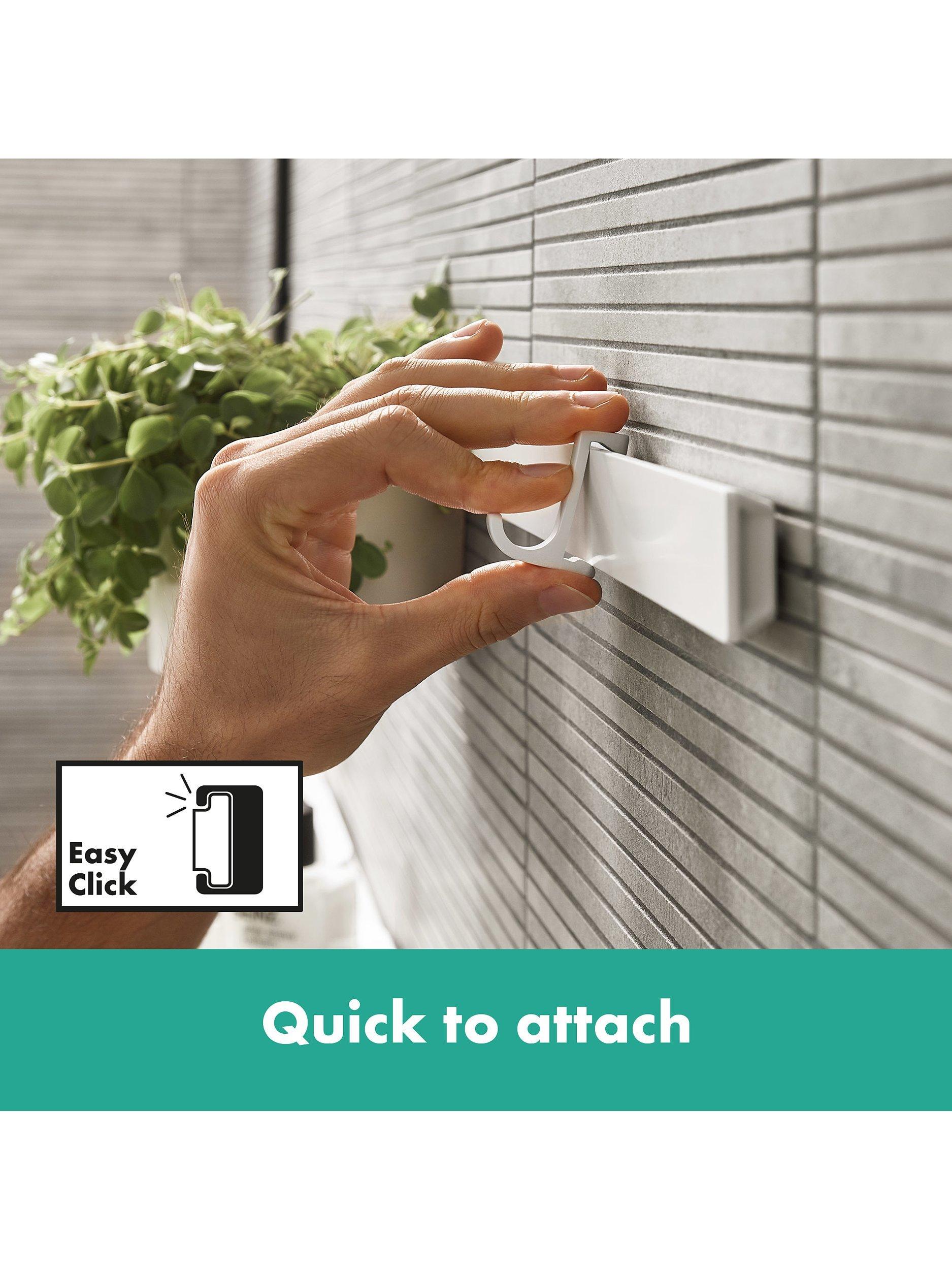 Attach the 70cm rod, which clings extra flat to the wall, then add the shelf and accessory holder. Simply clip on, slide over, and you're done. This flexible storage solution offers plenty of space even in the smallest of bathrooms and all parts can be easily removed if needed.