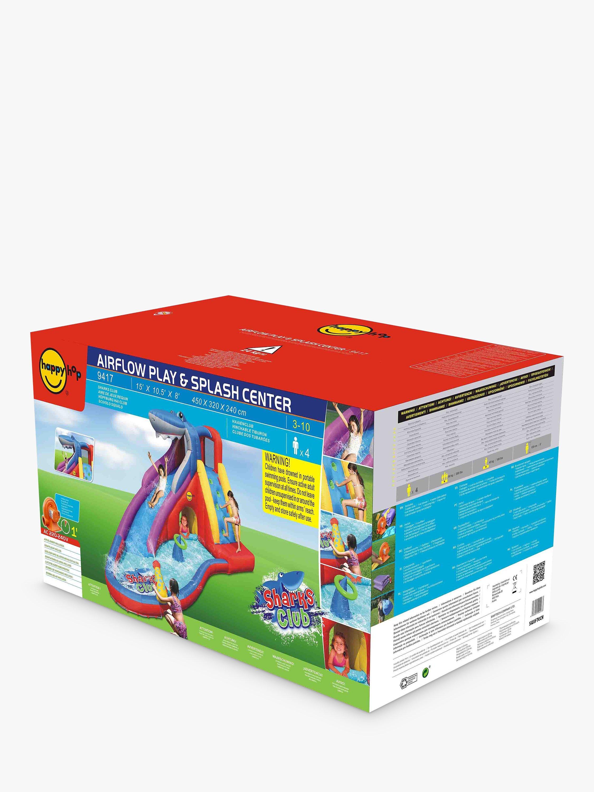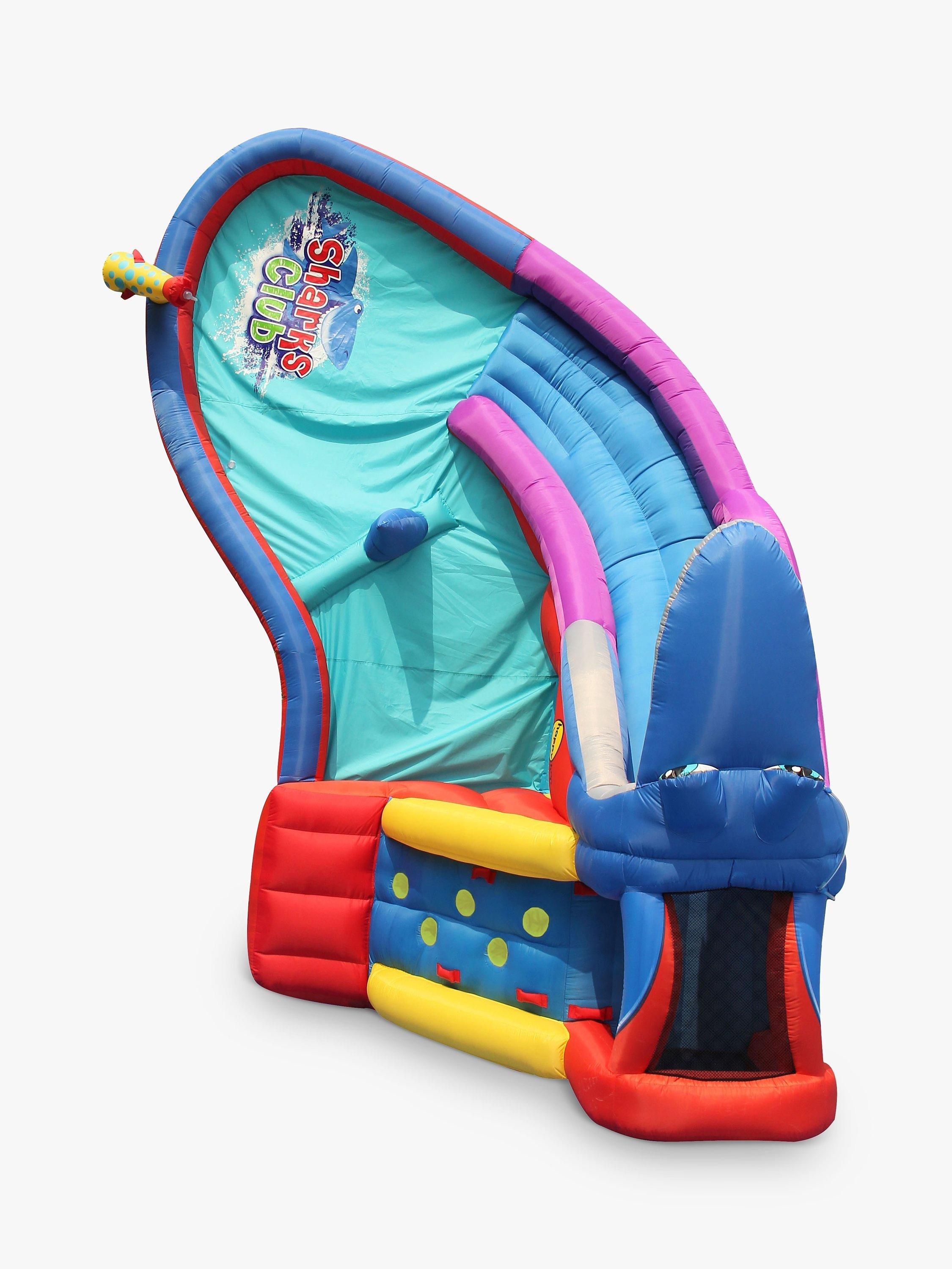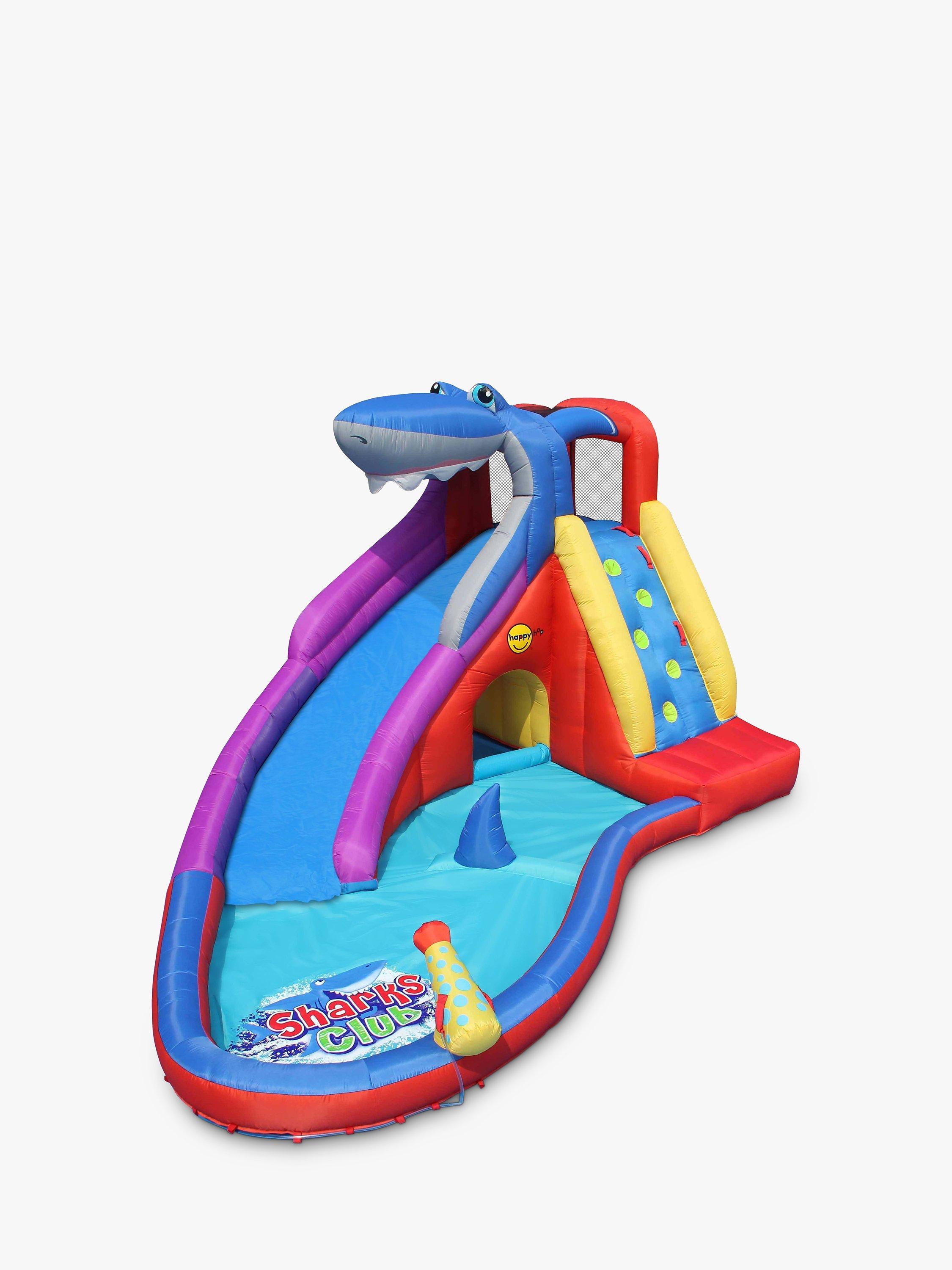 The Happy Hop Sharks Club bouncer brings exciting water play to any party or outdoor playtime. Connect the hosepipe to the cannon so it can shoot water for a full day of play.