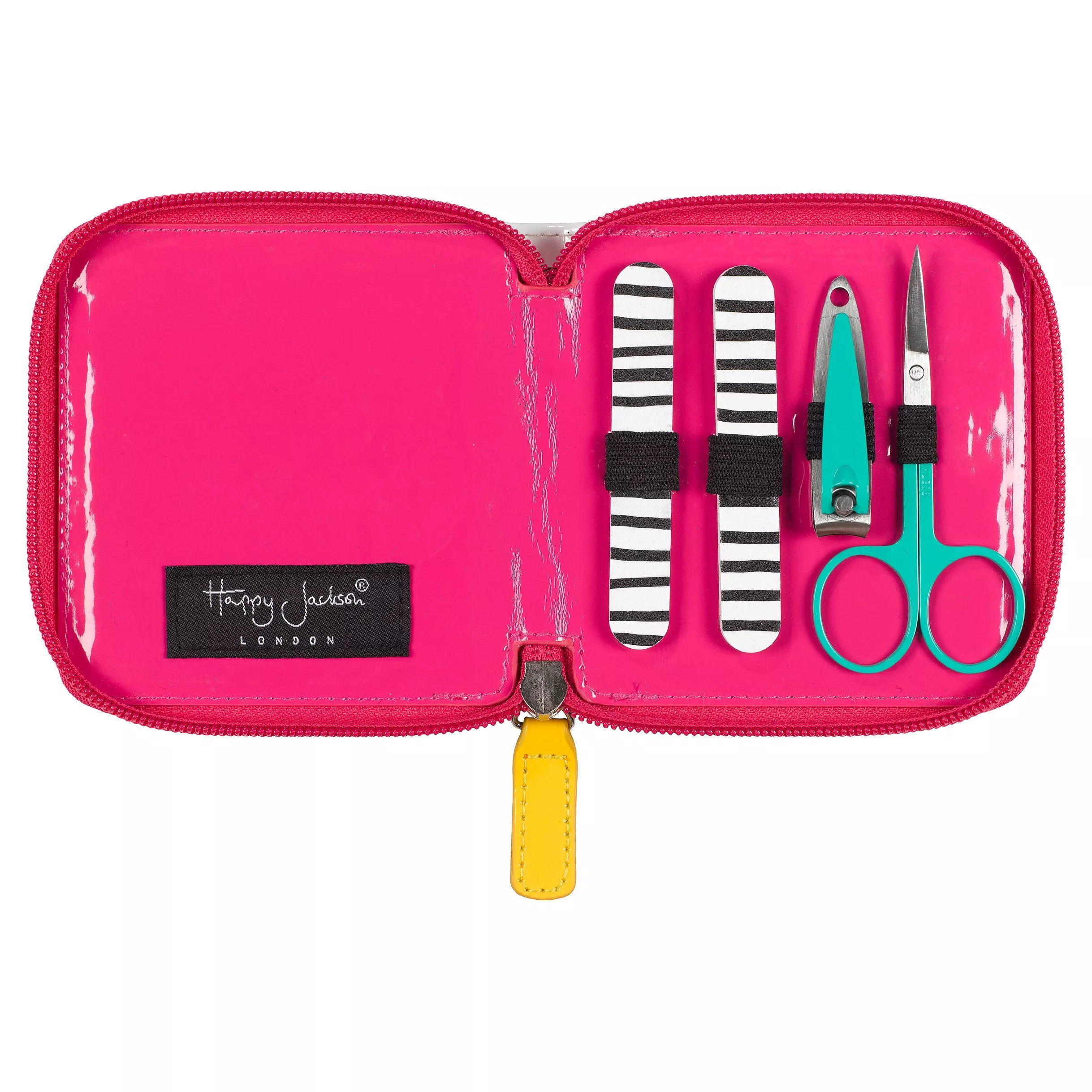Keep your nails in top shape with this Happy Jackson manicure set. Perfect for travelling or storing in a small place, the set includes two striped nail files, nail scissors and clippers.