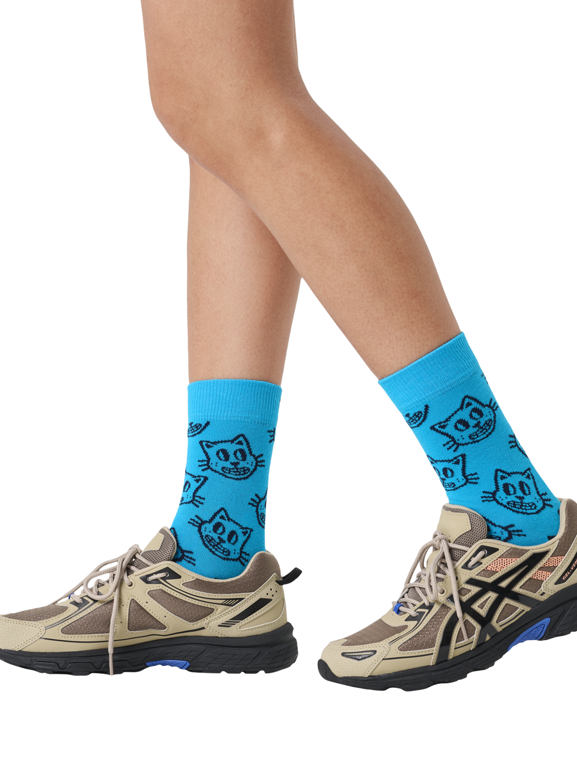 Happy Socks cheer up your feet! Meet the purr-fect companion for your feet – Happy Socks' whimsical Cat Sock! Featuring a repeating pattern of adorable cartoon cat faces, these fun socks are sure to put a smile on any cat lover's face. Happy Socks are all about authentic self-expression, and these funky socks let you show off your feline fandom in style. With their bold, colourful design and playful vibe, they're the cat's meow for anyone who loves a little novelty in their wardrobe.