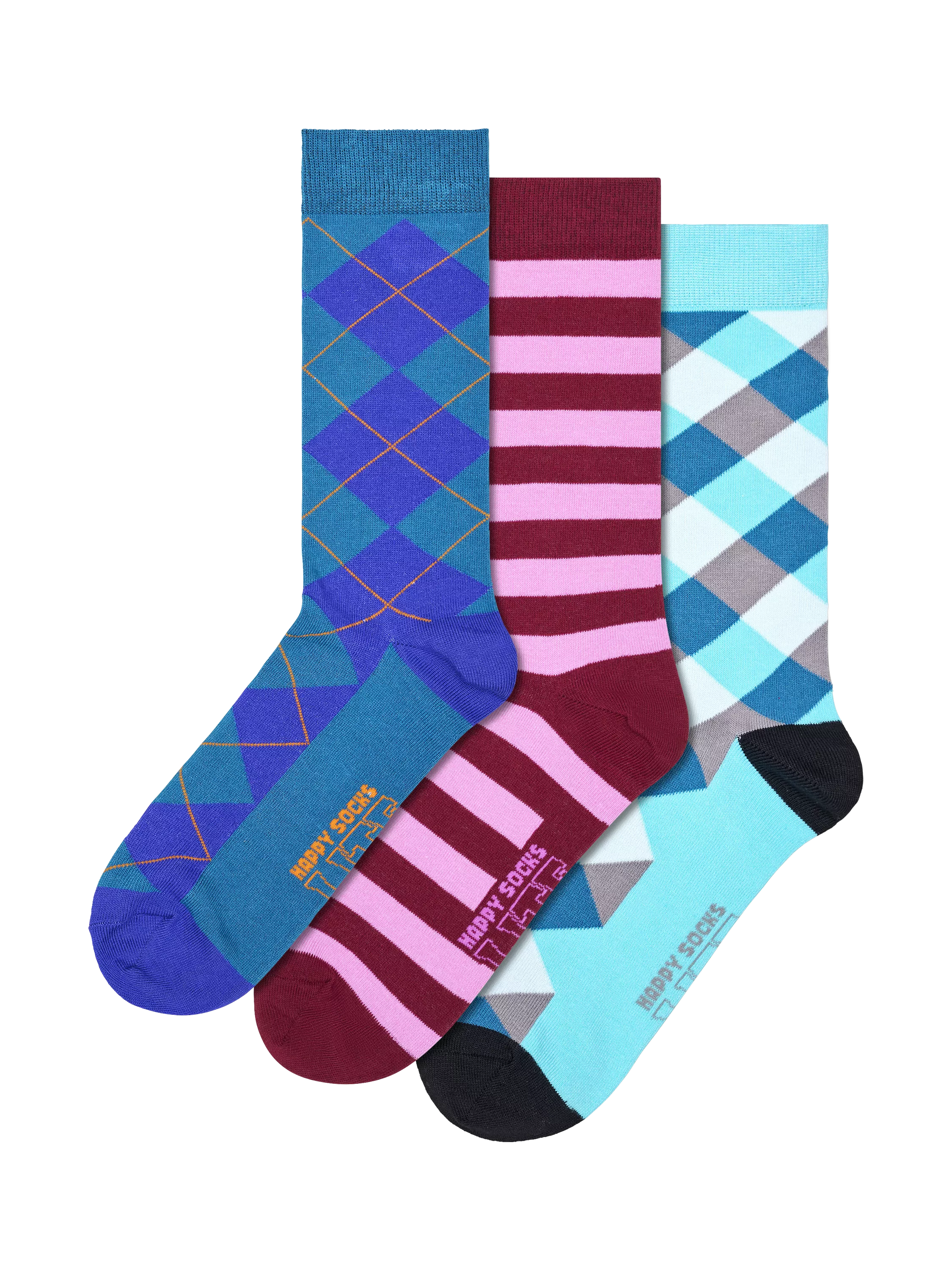 HS LiteHappy Socks Lite Argyll & Stripe Socks, Pack of 3, Multi