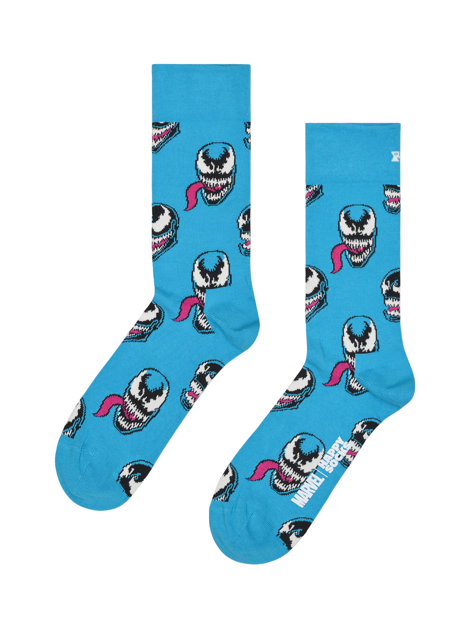 Happy Socks cheer up your feet! Embrace your inner villain with the Venom Sock! This bold sock features a repeating pattern of Marvel’s Venom's menacing head, perfect for fans of Spider-Man's most infamous foe. Made from soft and breathable combed cotton, these socks provide exceptional comfort. The reinforced heel and toe ensure durability, making the Venom Sock a reliable choice for any Venom enthusiast.