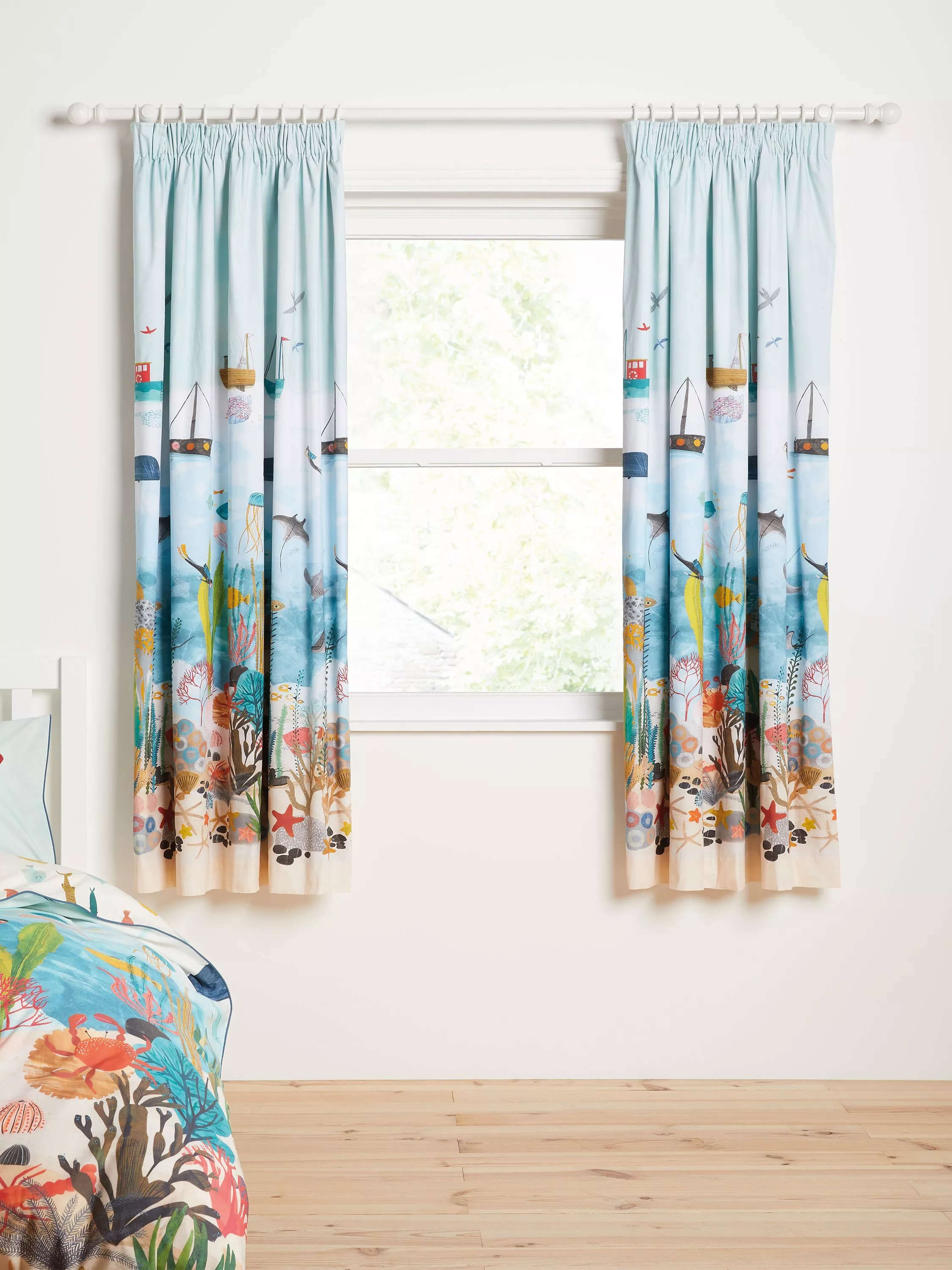 Made from pure cotton, this pair of children's curtains features the Above and Below print, that's been specially created for us by Harlequin. It's a nautical themed print that will fill their space with colour. There's also a blackout lining that helps to block out distracting sun beams or street lights and the pencil pleat design gives them a smart appearance when hung. The width dimension refers to the width of each individual curtain in the pair.