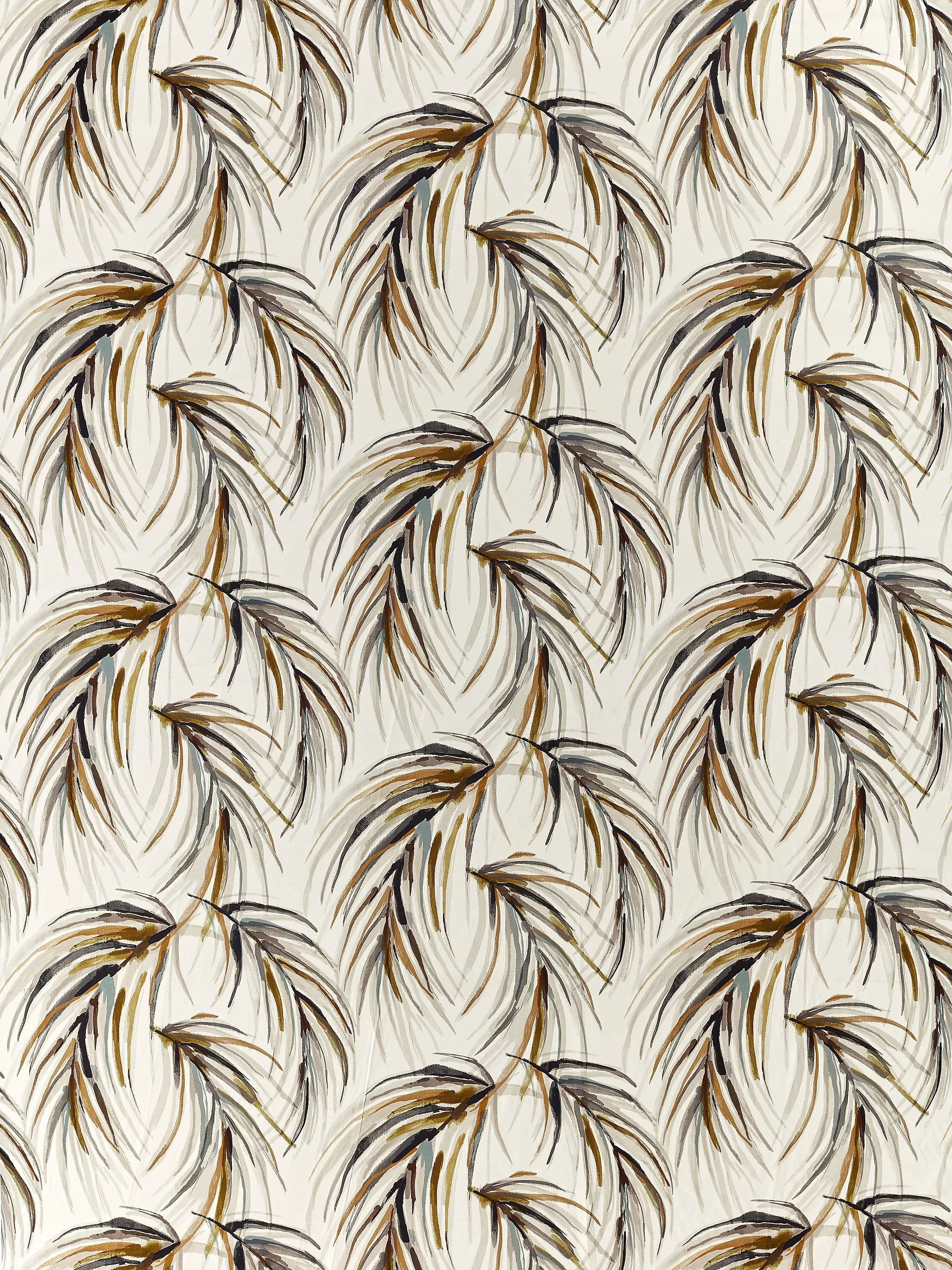 Reminiscent of palm trees swaying in the gentle breeze, Alvaro from Harlequin is a painterly design that's digitally printed onto cotton satin. The fresh, white ground contrasts with the subtle highlight tones of layered leaves.