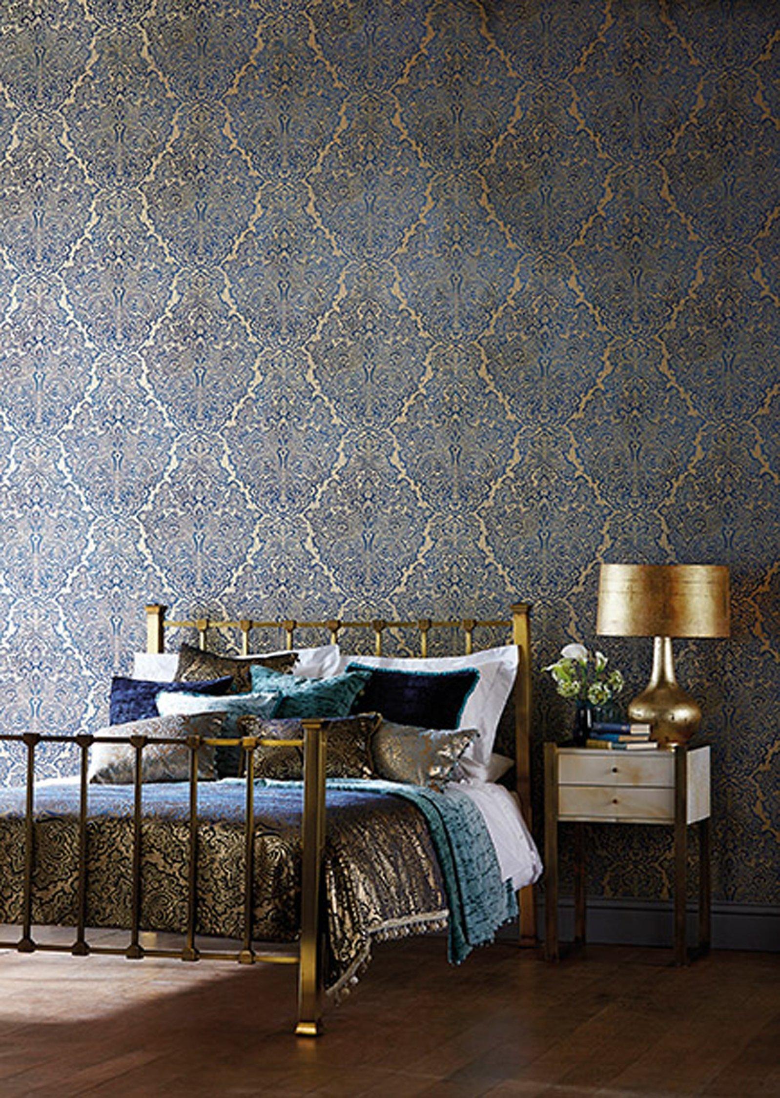 Adapted from an existing Harlequin design, but given a very modish slant, Aurelia is a majestic paisley motif, which resembles tooled leather embellished with metallic elements.
