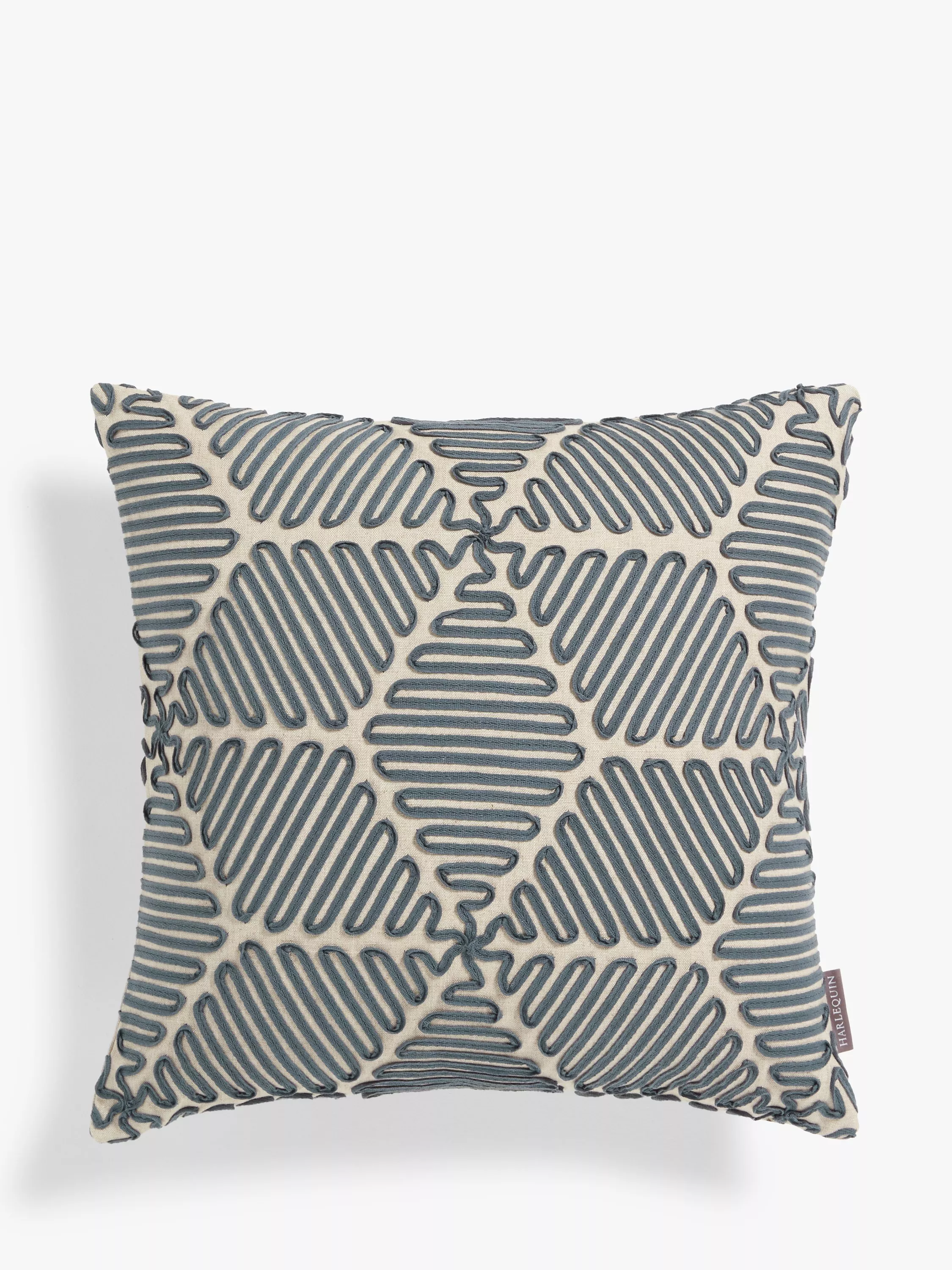 A intriguing textured design cushion featuring waves of woven braiding.