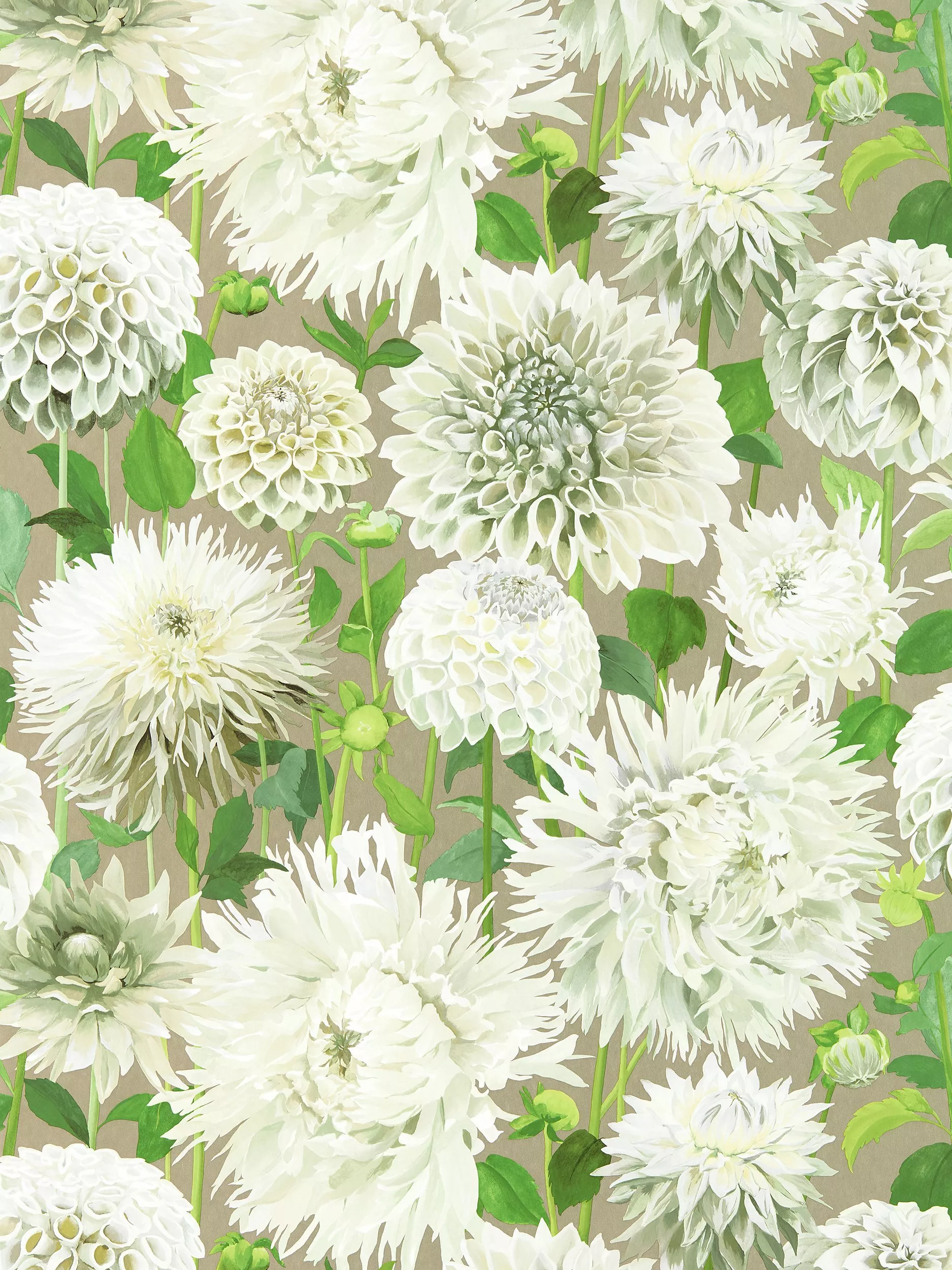 A stunningly detailed display, this hand-painted design is definitely best in show! Subtle variations of colour highlight the intricacies of each individual dahlia bloom, building to create a glorious floral wallpaper.