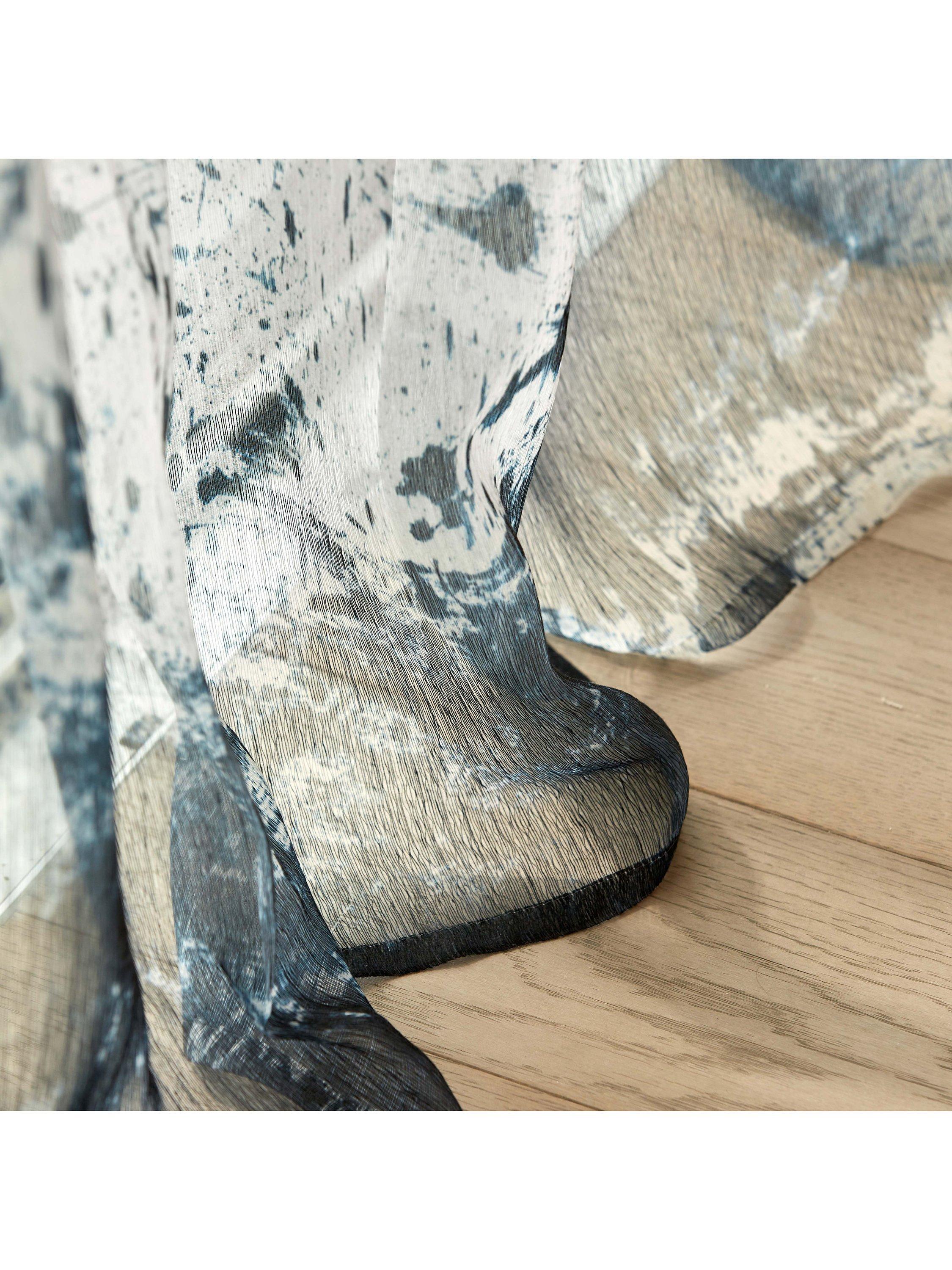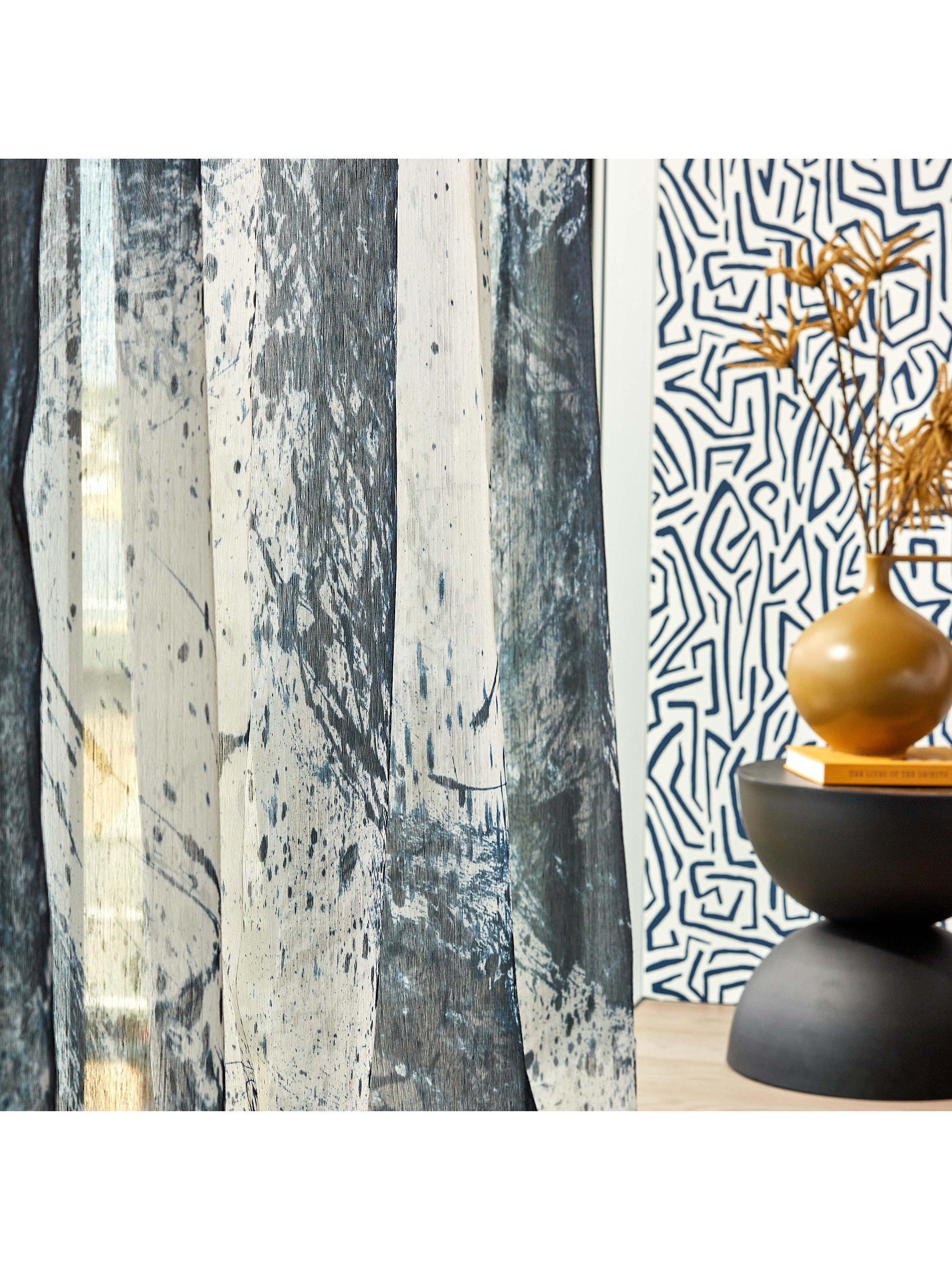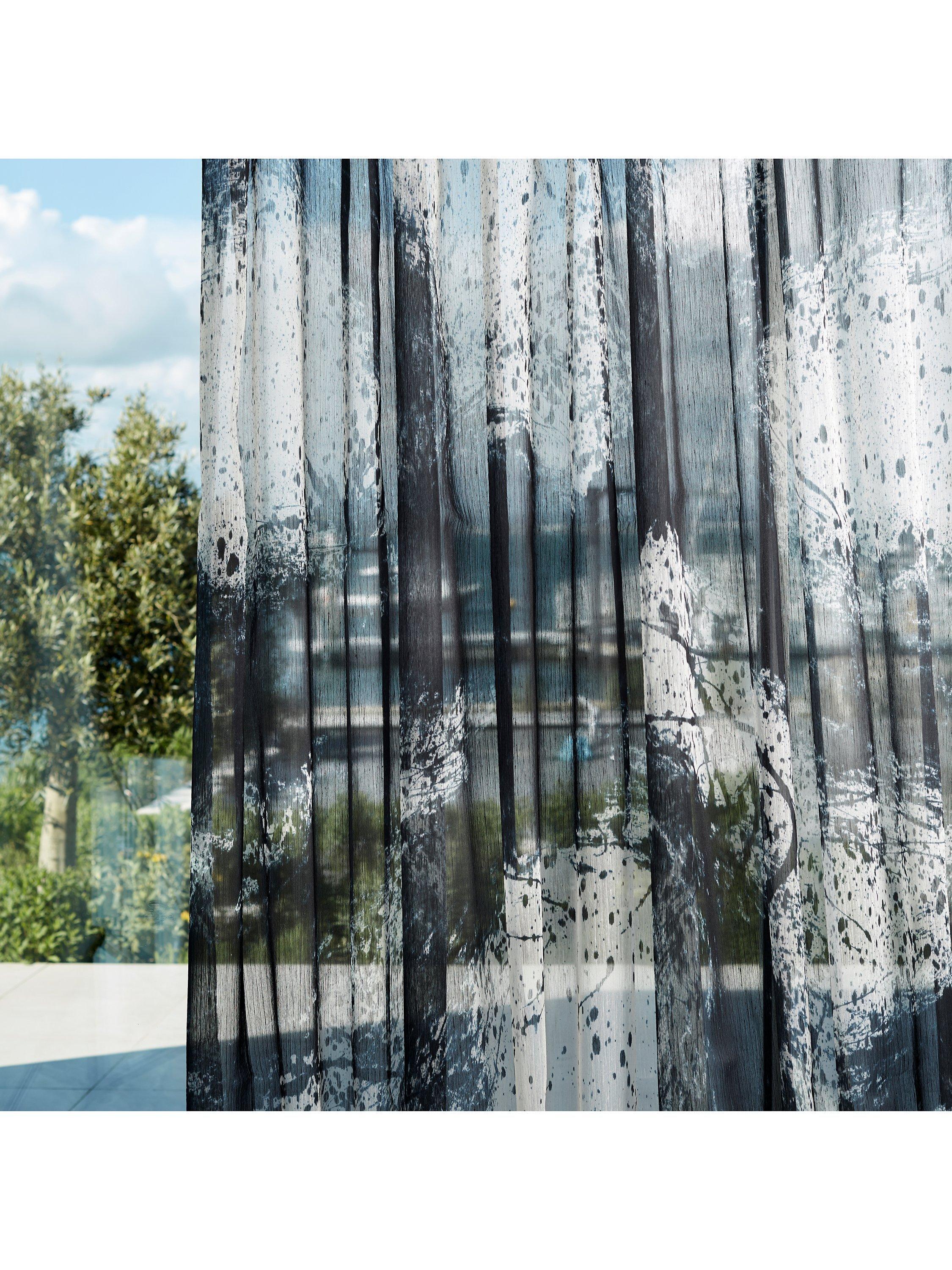 Alive with free-flowing movement and created outdoors by an expressive hand, with abstract marking twists and turns across a huge repeat; on a semi-transparent ground. Contemporary and statemental, the Enigmatic Sheer is inspired by the mid-century phenomenon of kinetic art.