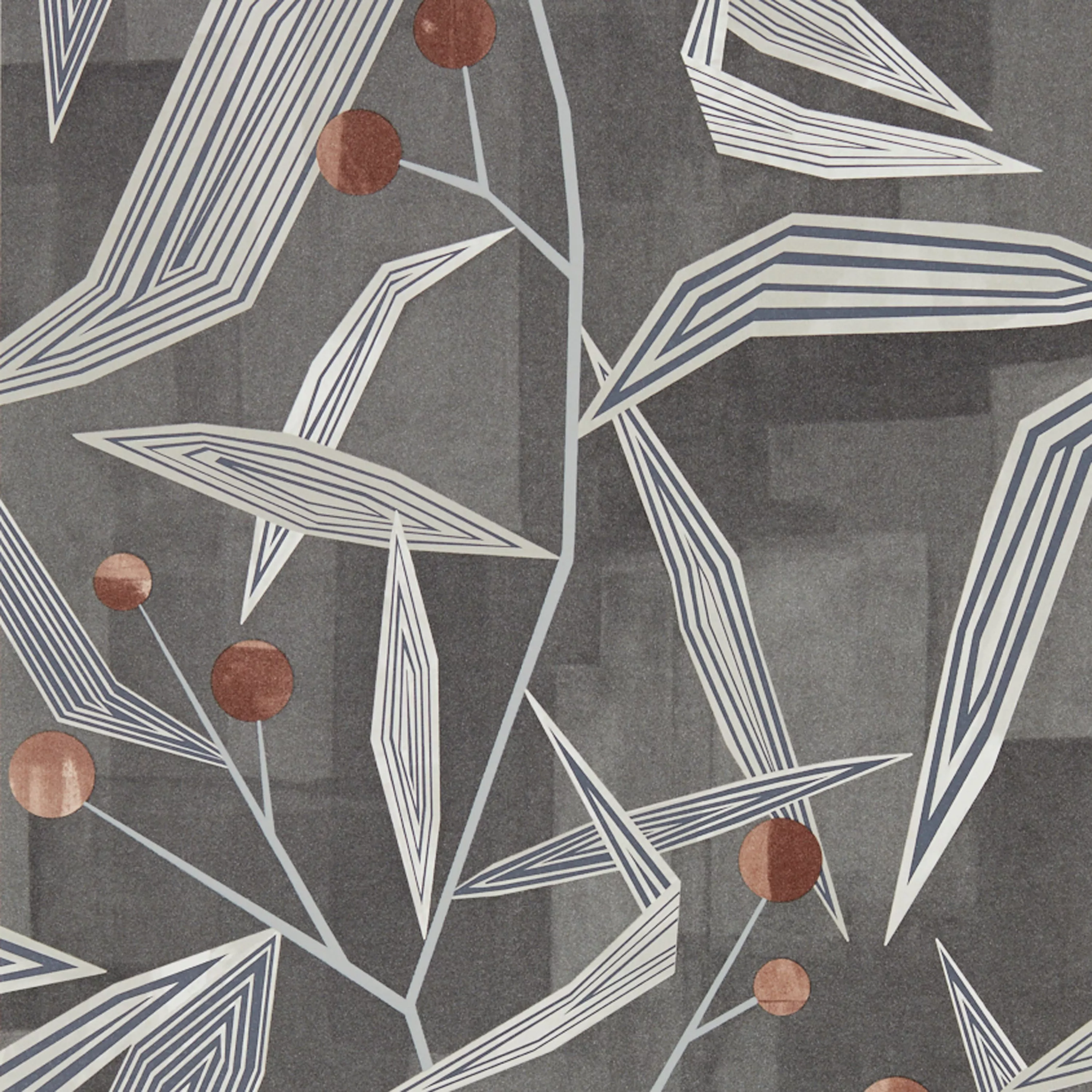 Angular geo-floral design with stylised leaves.