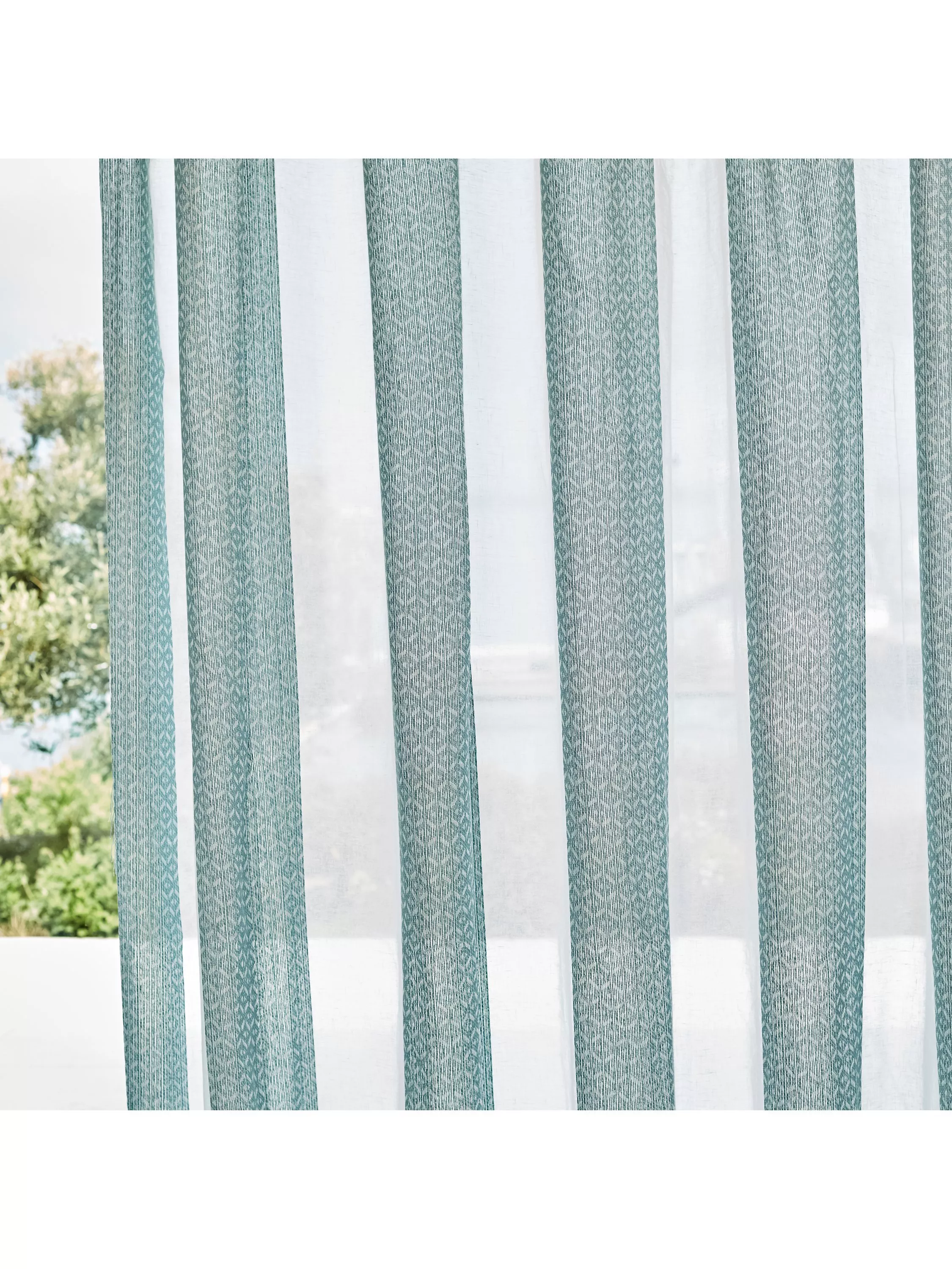 With the appearance of embroidery, Ether is a wide width linen blend sheer with an alternating woven stripe detailing.