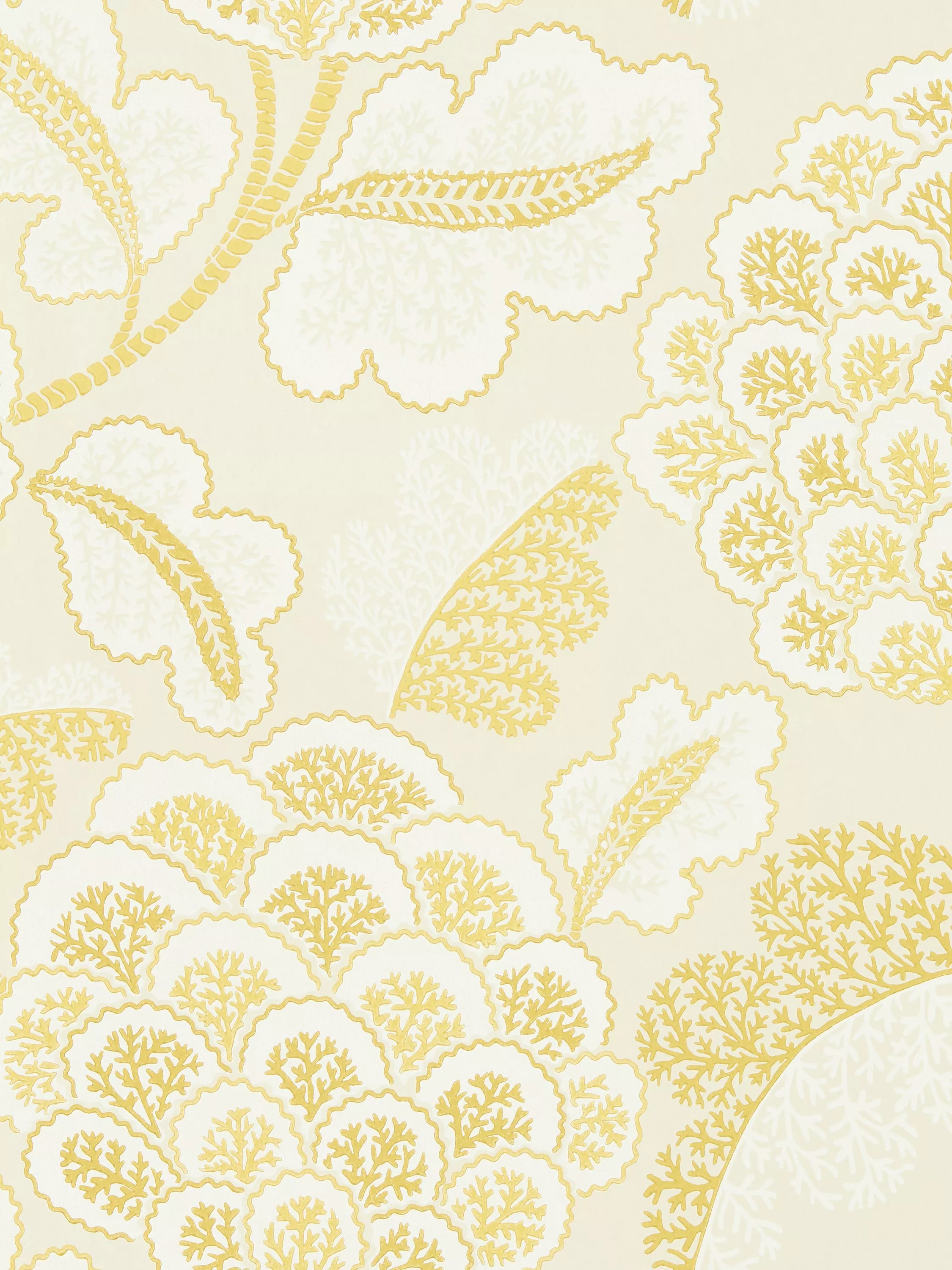 Coral meets stylised botanicals in this large-scale, interpretive wallpaper. Inspired by authentic Asian patterns, hand-painted florals repeat to create a slightly naive trail that's surface printed in a range of beautifully soft hues.