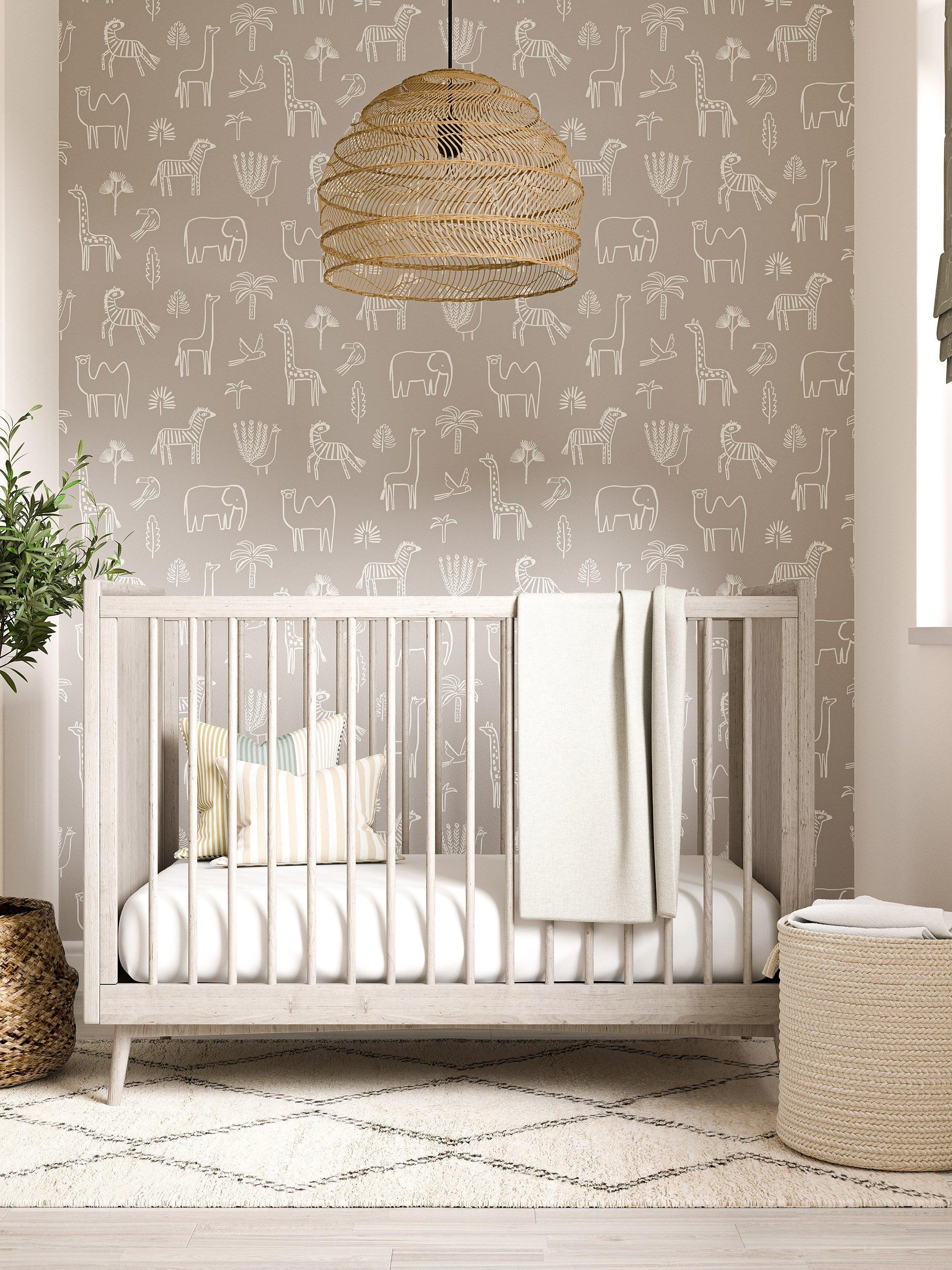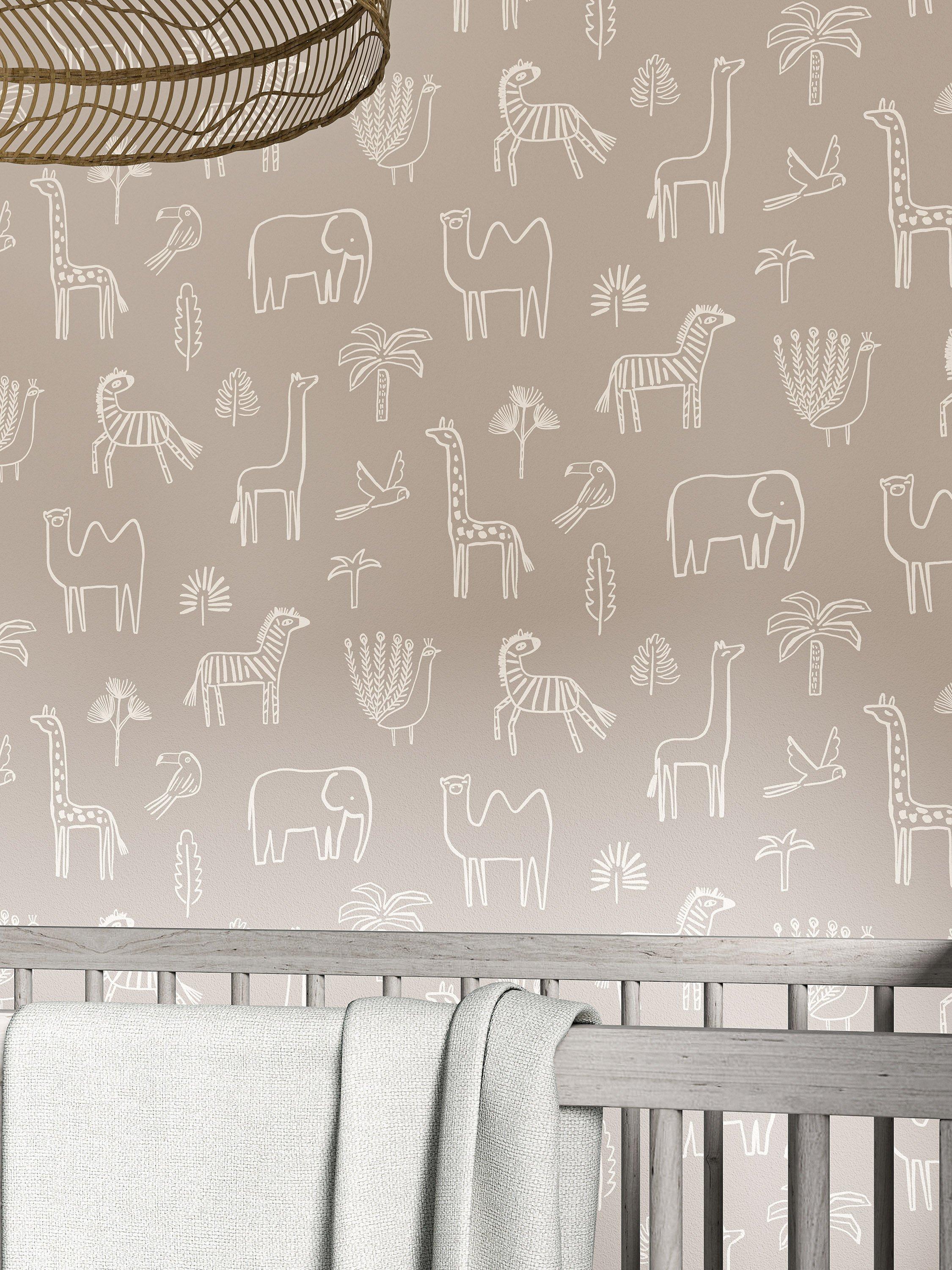 Simply illustrated and full of character, this well-spaced scene of hand-painted African animals is a great all-rounder. Use in playrooms and nurseries.