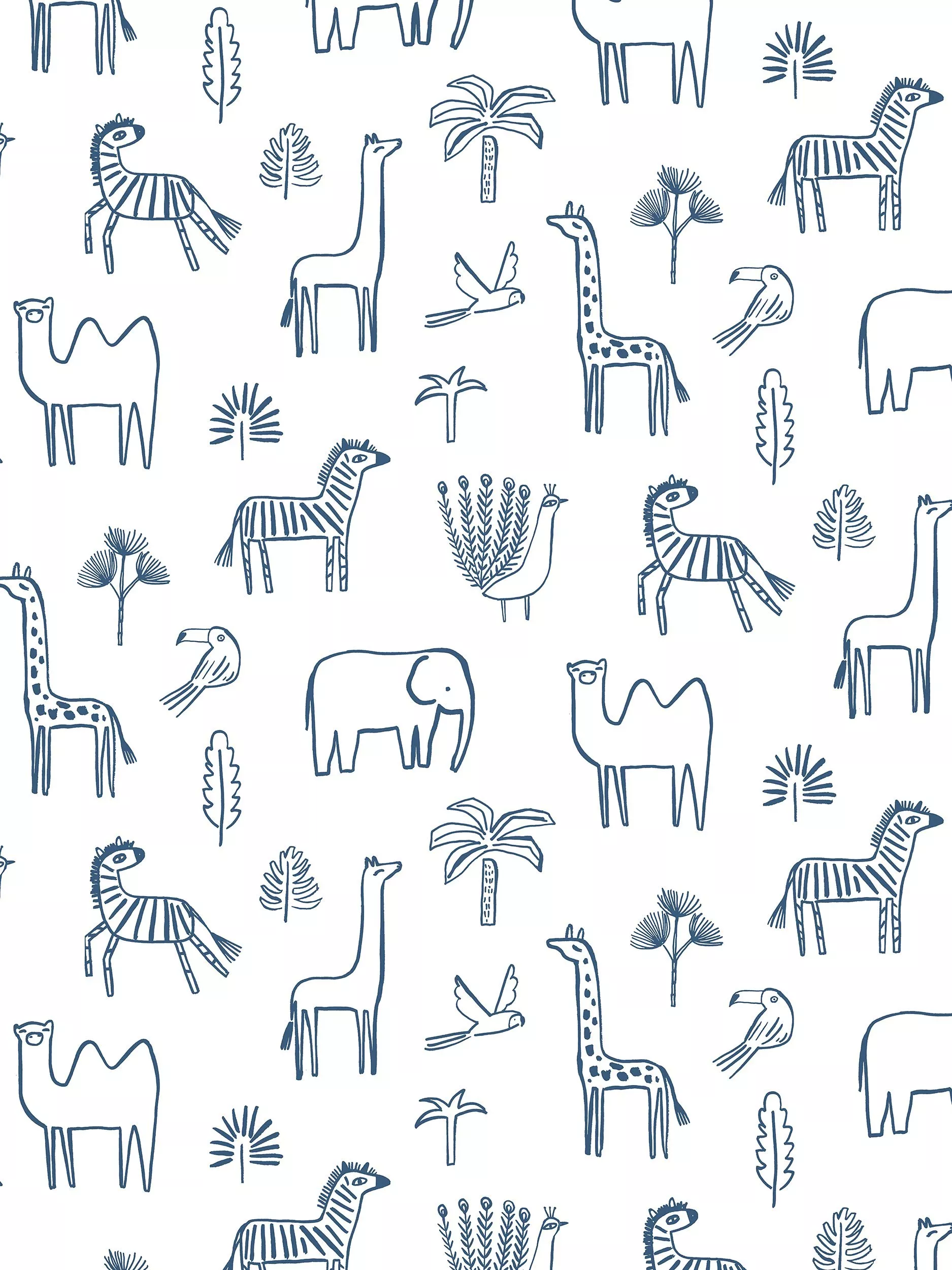 Simply illustrated and full of character, this well-spaced scene of hand-painted African animals is a great all-rounder. Use in playrooms and nurseries.