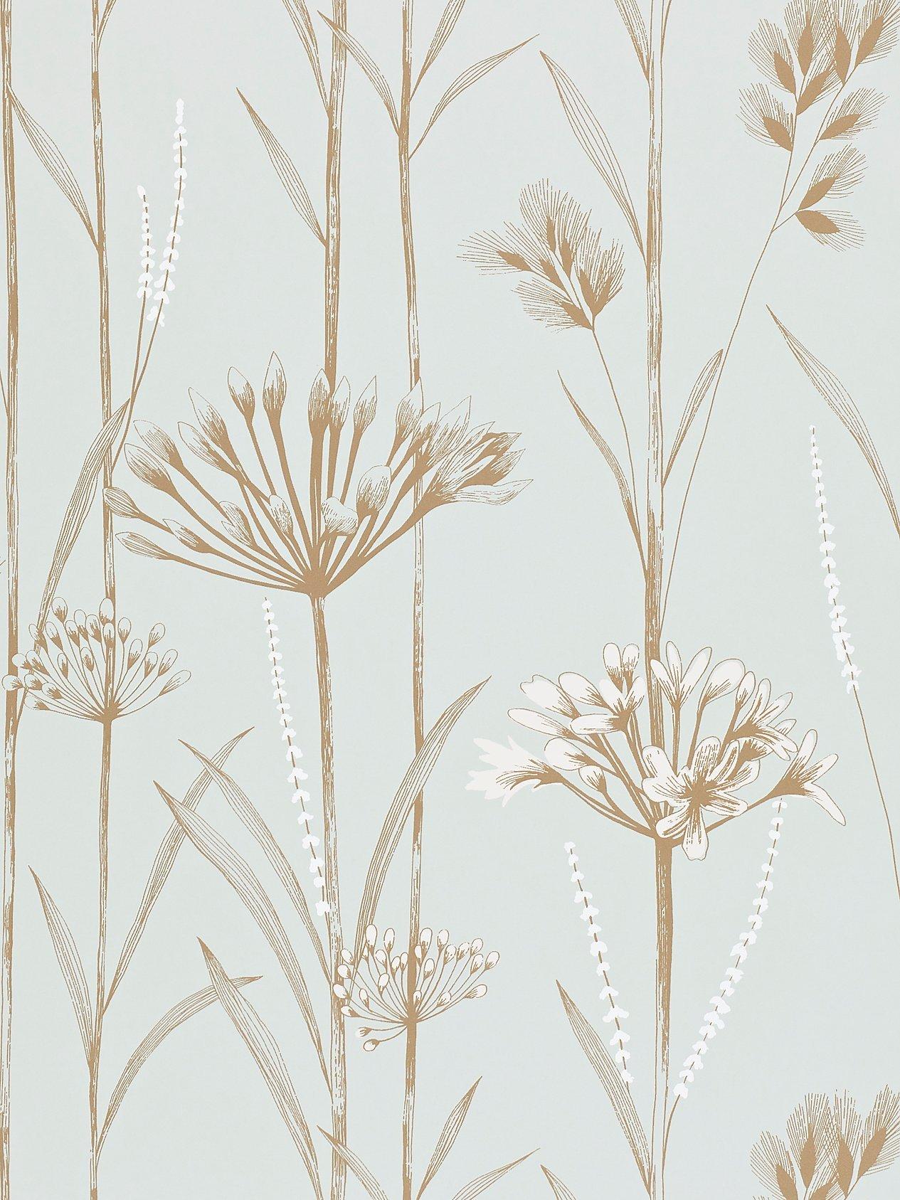 A beautiful wallpaper depicting seed heads and grasses, embellished with layered printed effects and flashes of metallic.