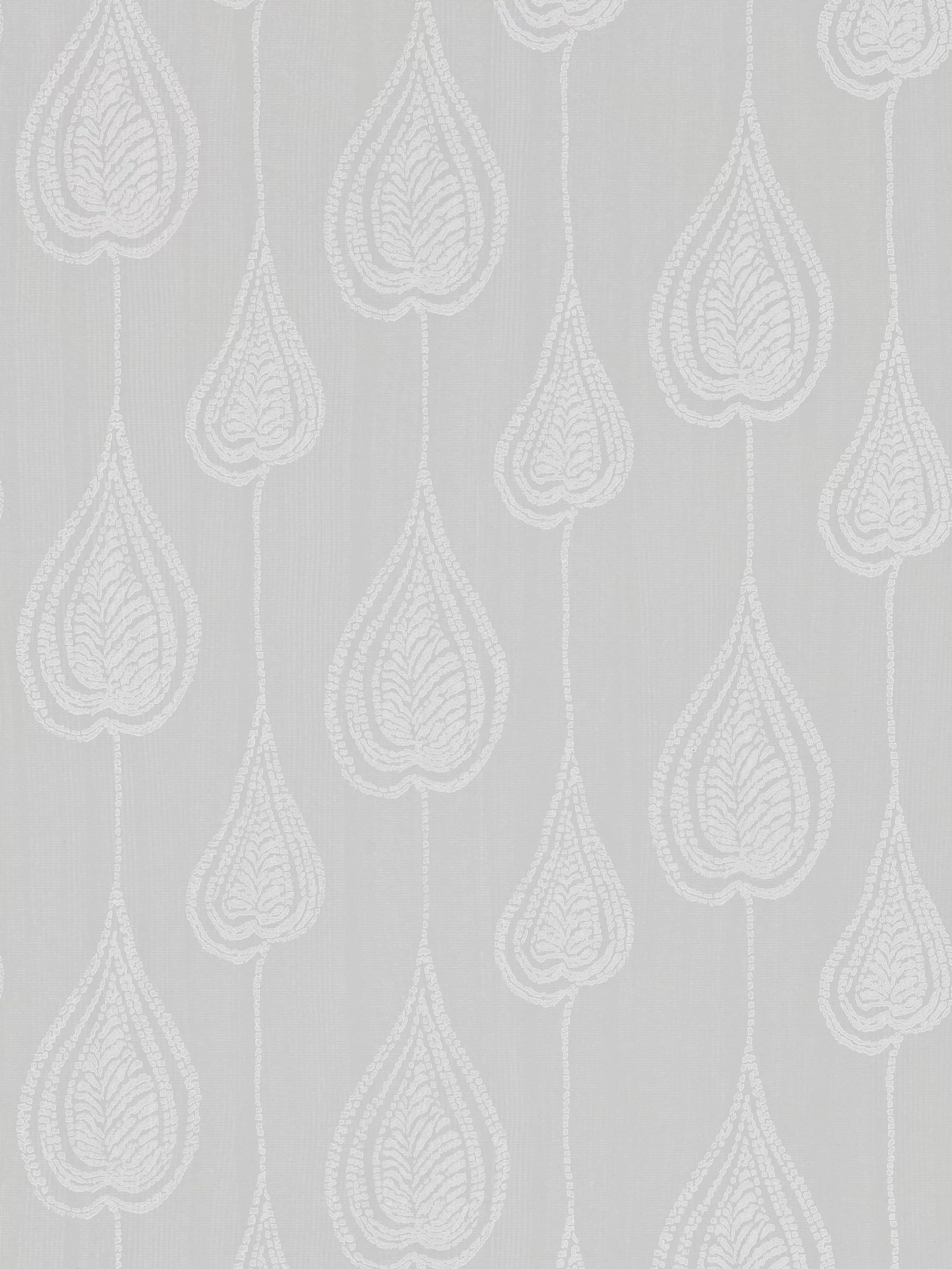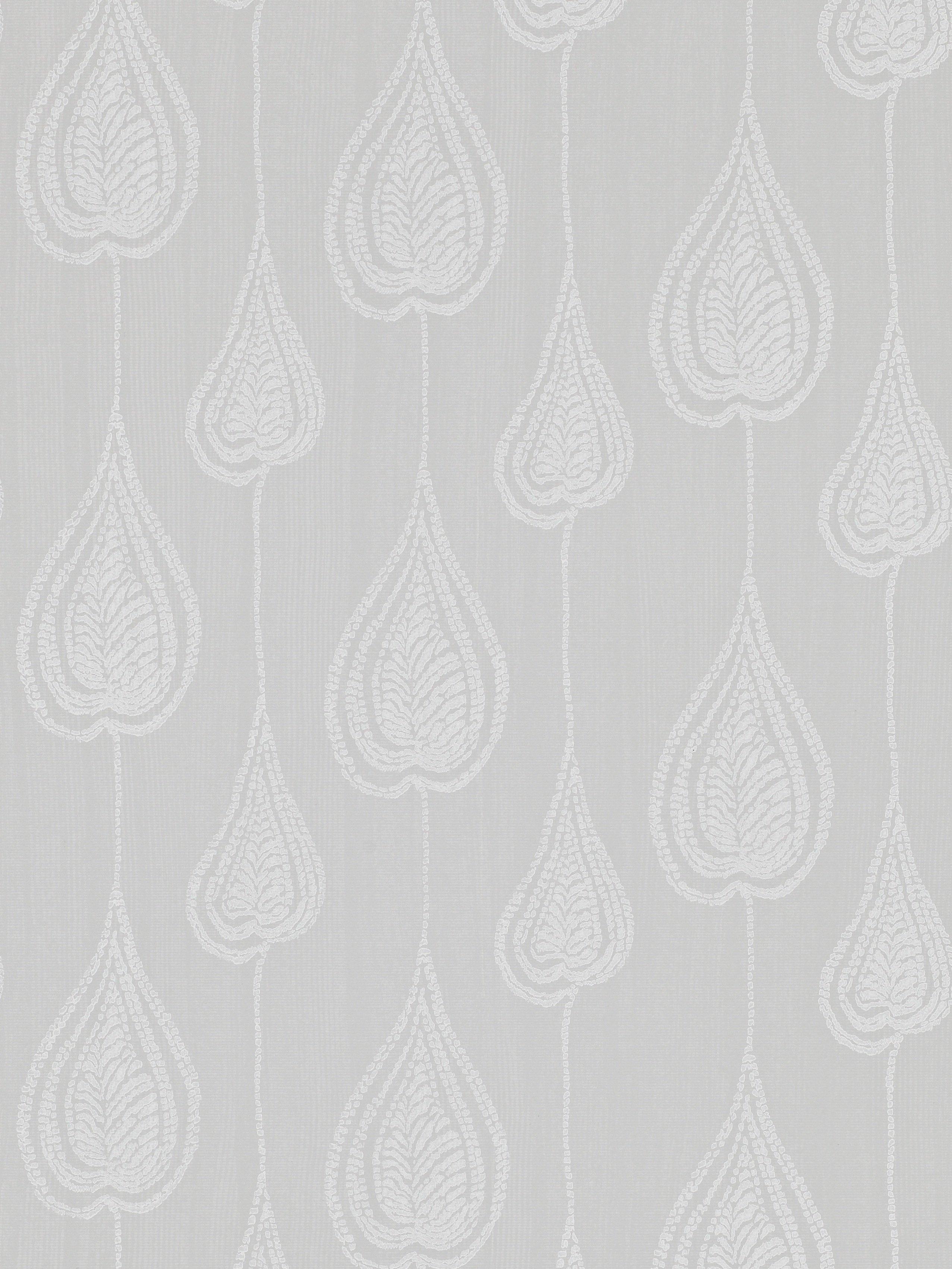 A pointed leaf naively interpreted using a series of dots, against a textured look wood effect ground.