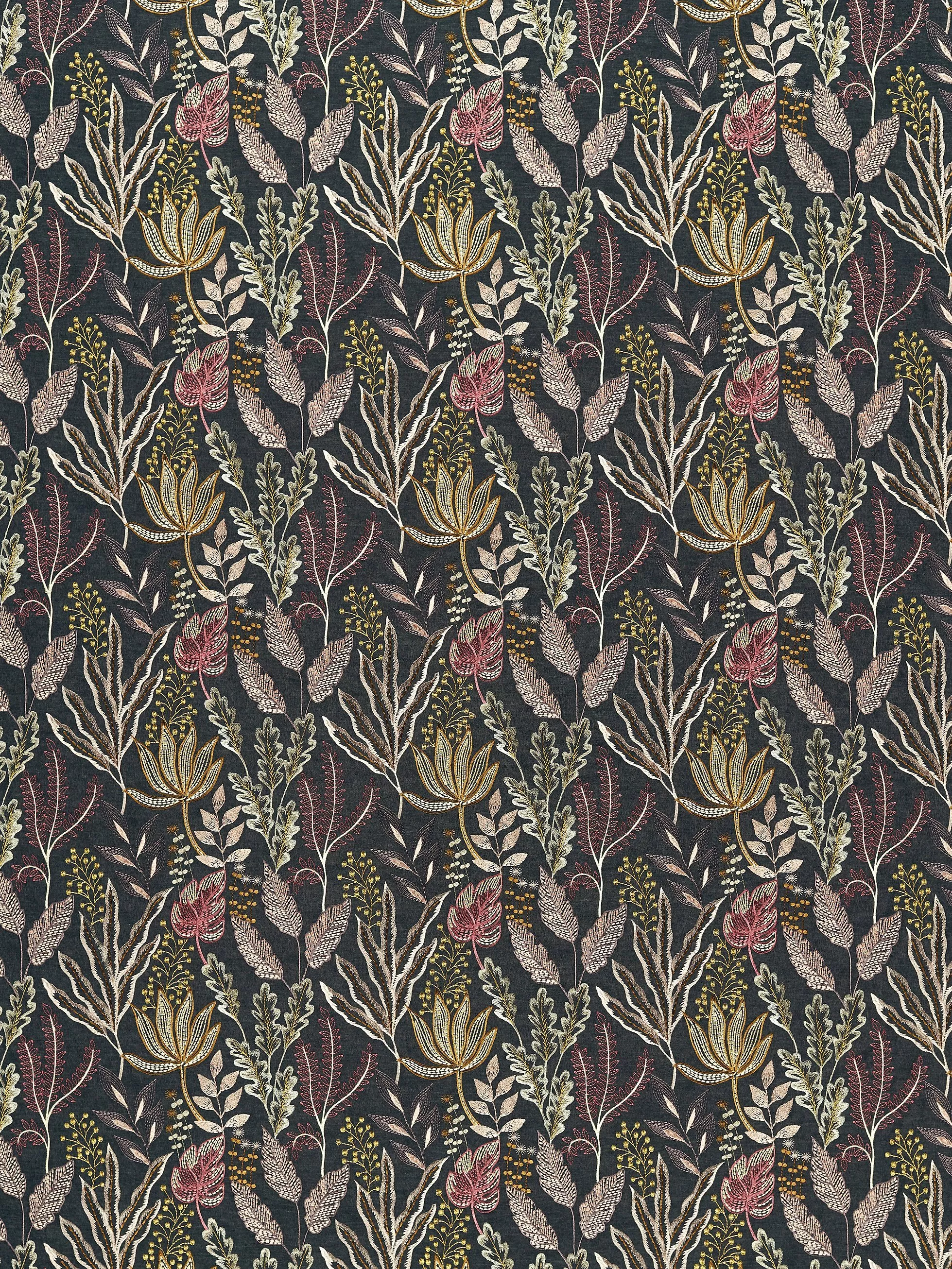 Kick off your sandals and enjoy the island feel of this multicoloured embroidery, inspired by incredible coral reefs and rainforest plants. A natural linen look ground provides a textural base that contrasts against the elegance of light reflecting threads.