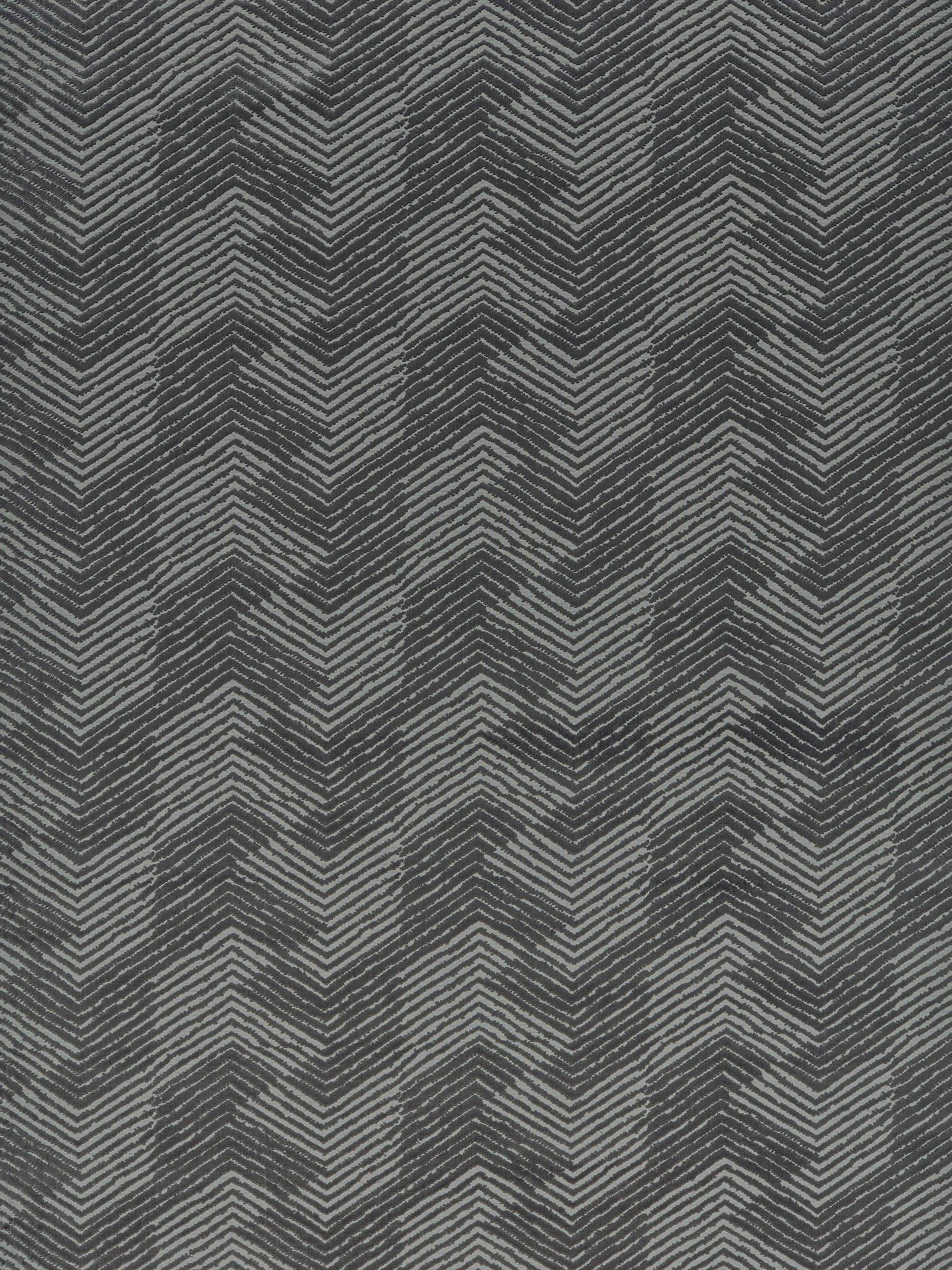 With a feathered edge, large, organic chevrons introduce fluidity to this elegant design. A tightly woven ground contrasts with the velvet pattern, creating a contemporary juxtaposition between matt and shine.