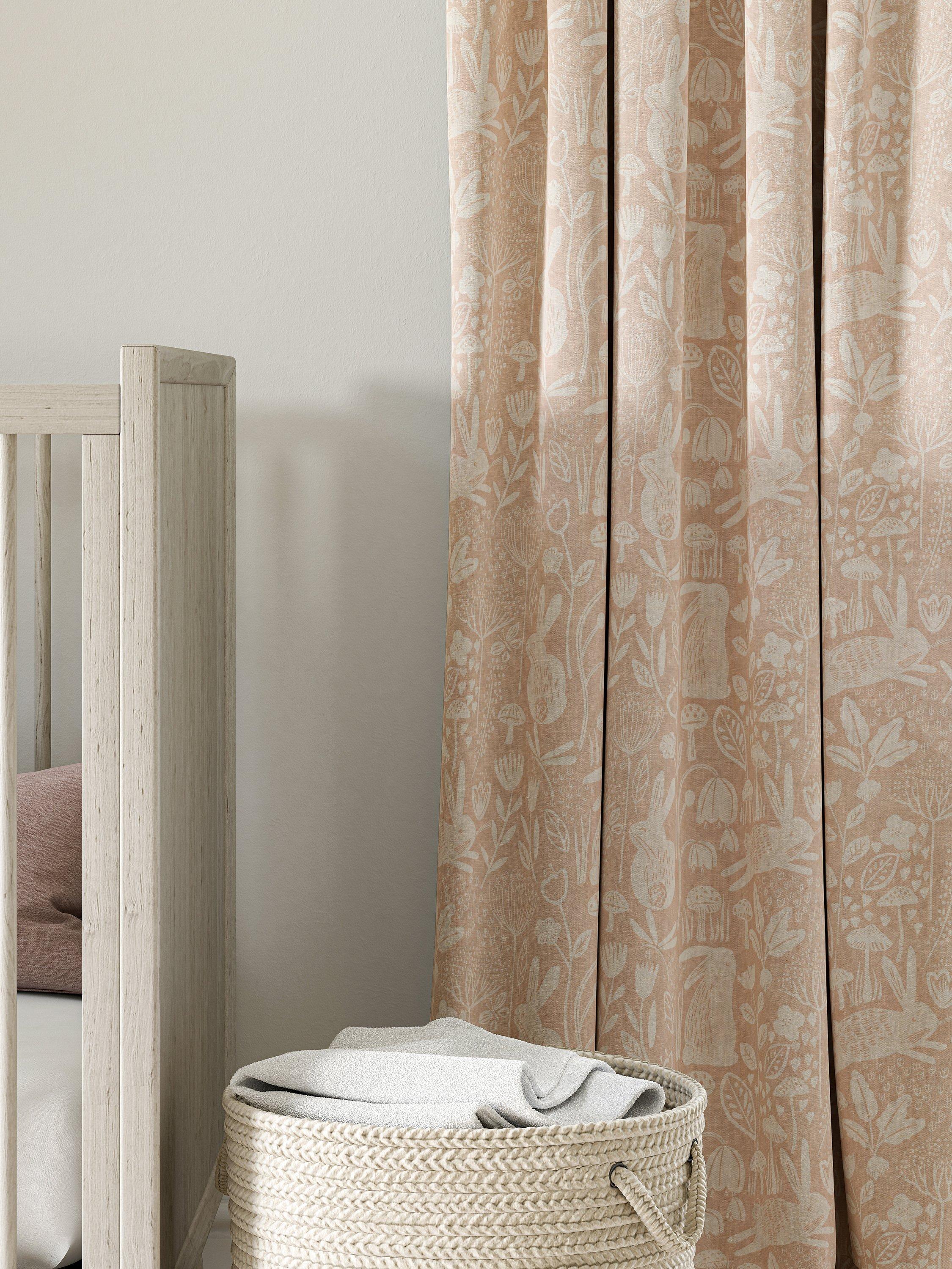 Into the Meadow is a charming fabric from Harlequin with an enchanting woodland design with bouncing bunnies playing amongst grasses and flowers. A classically English scene, it's perfect to use in a child's room.