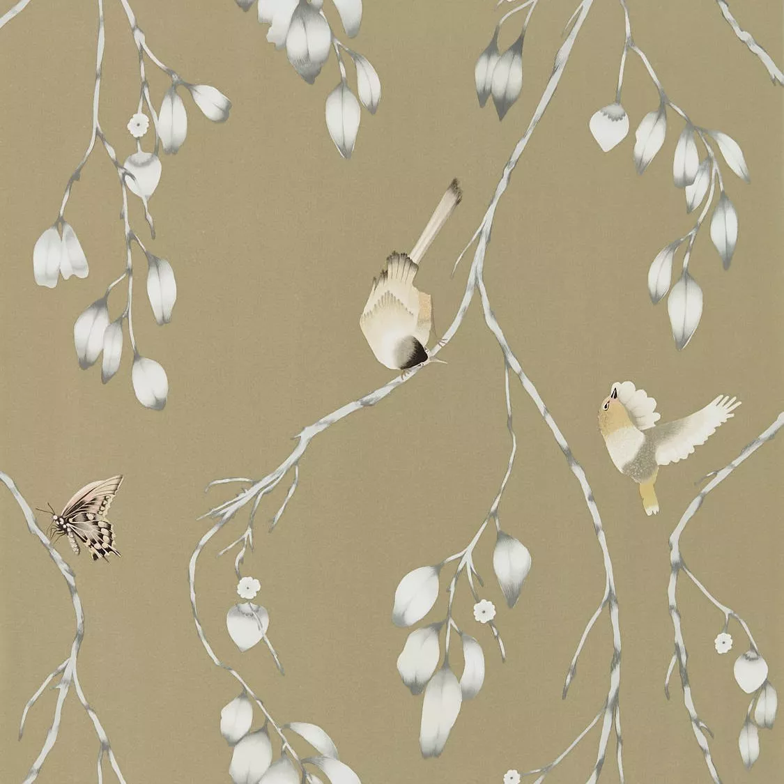 A bird trail, featuring butterflies and birds perching on willow-like branches.