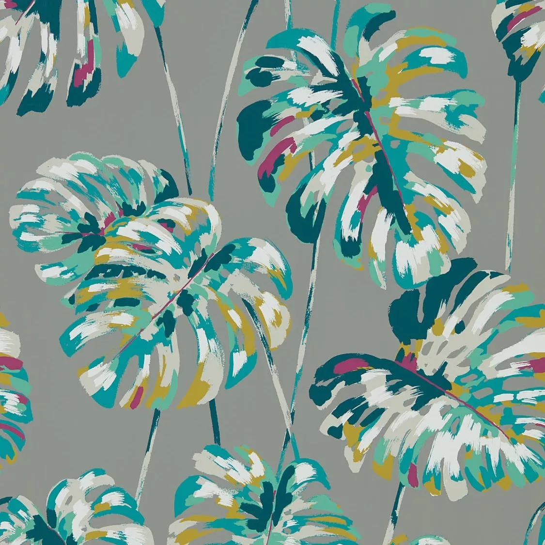 A dramatic, confident depiction of cheese plant leaves on an allover bold motif.