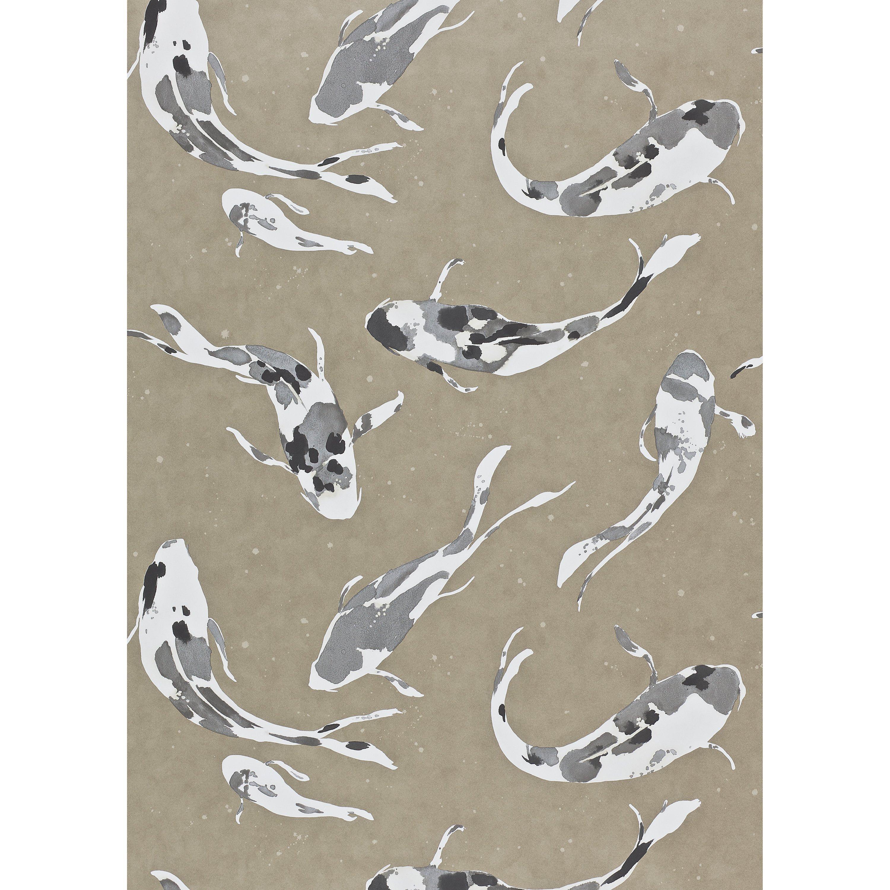 Capture the serenity of the aquatic with this painterly wallpaper, as delicately rendered Koi fish swim across its surface.