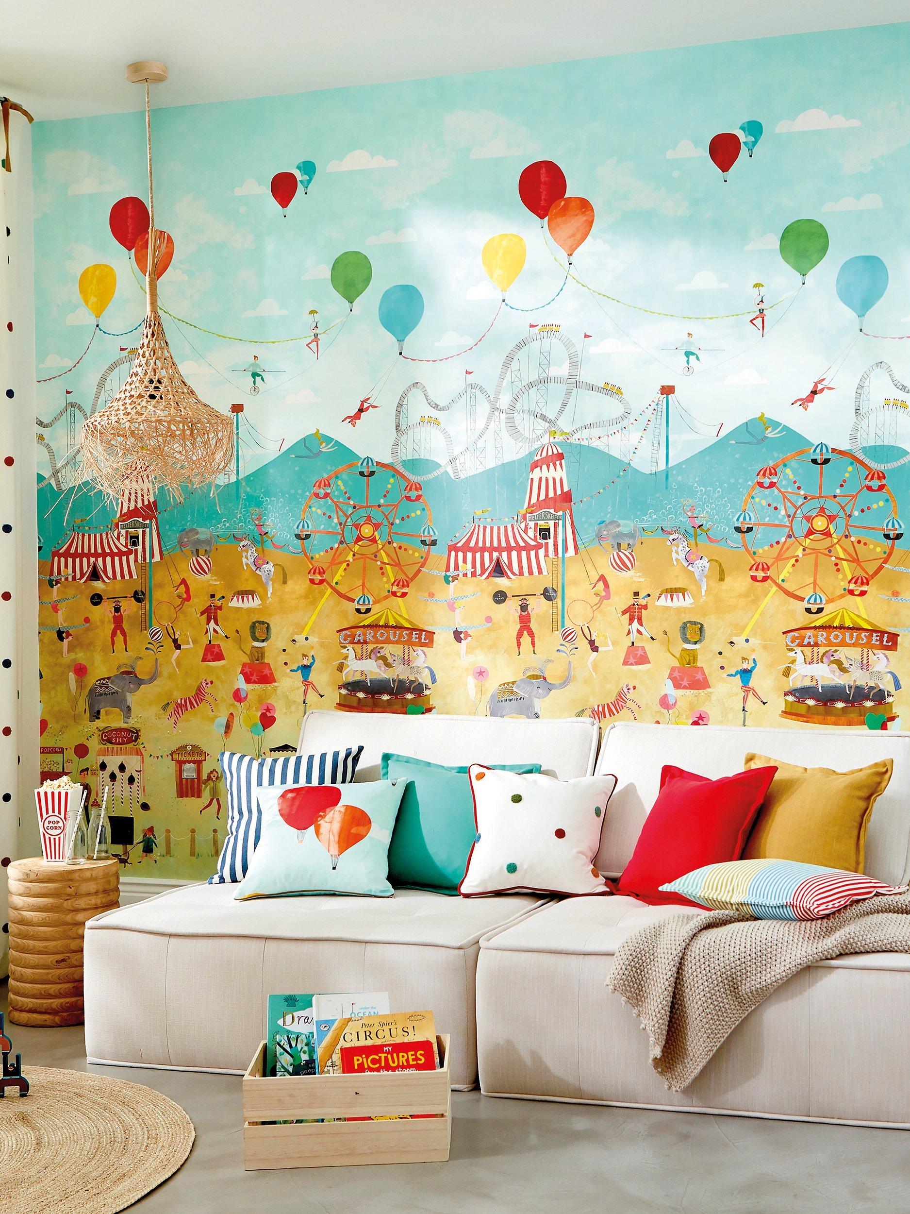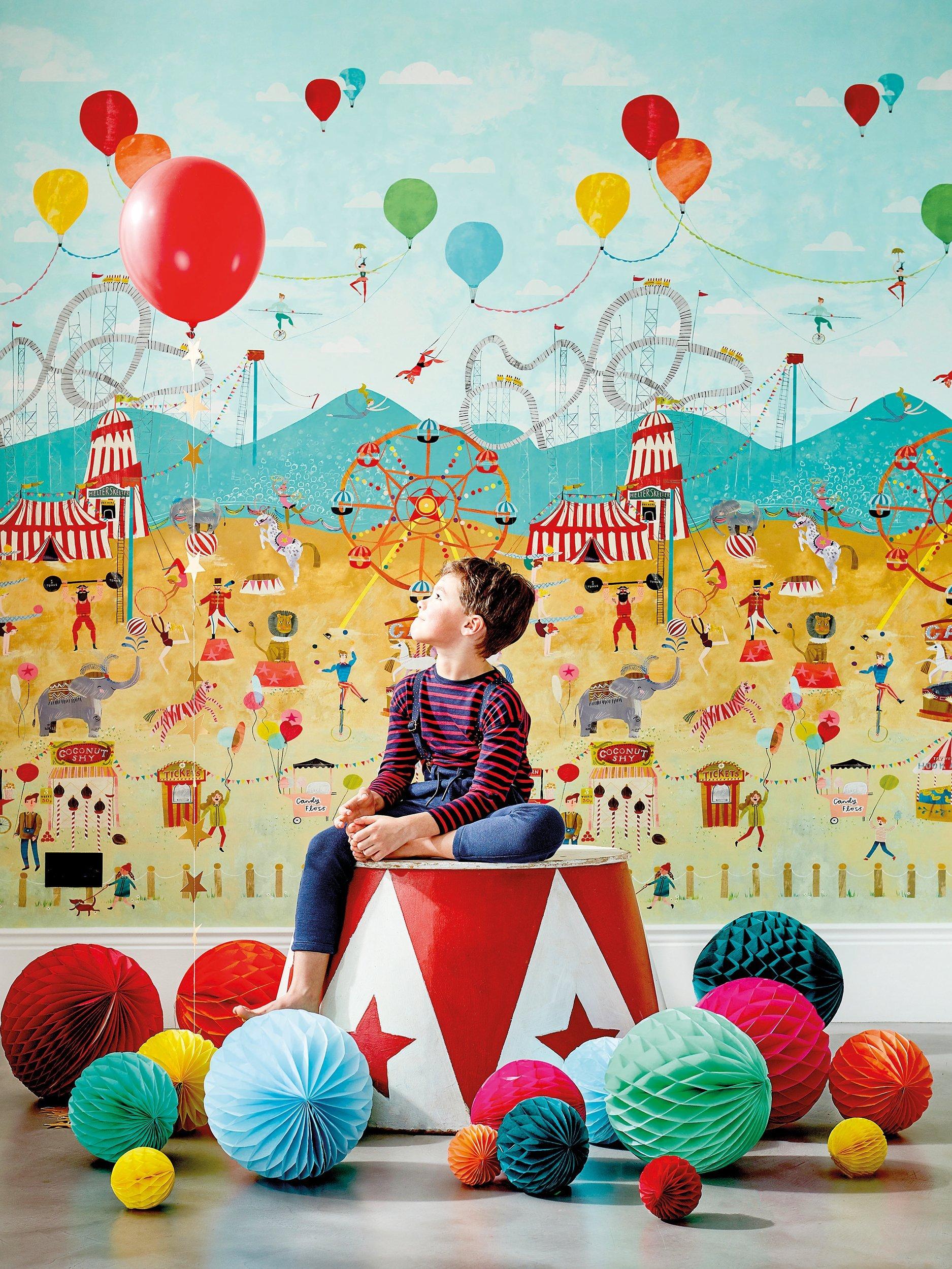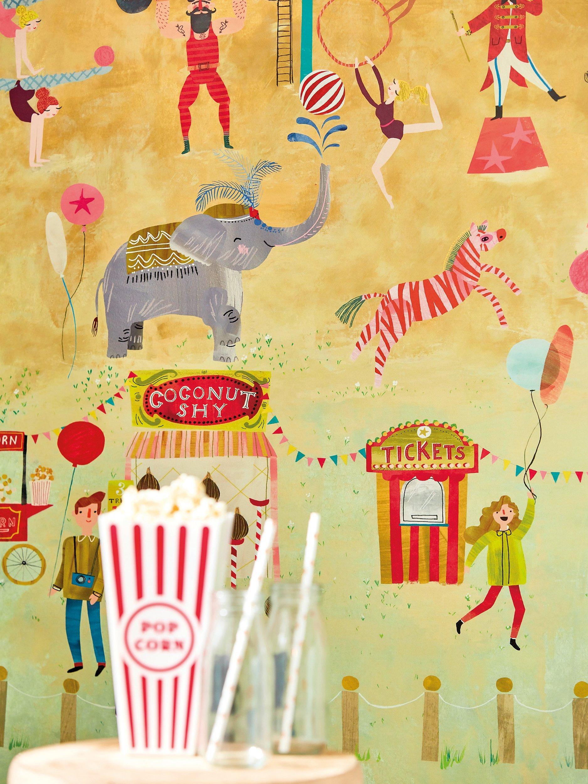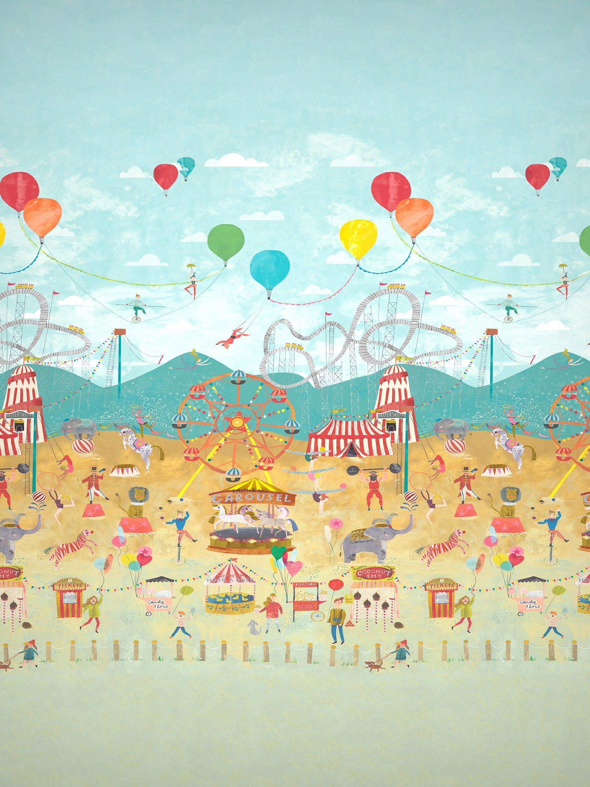 Roll up, roll up, the circus is in town! Step into this wonderful world of joyous characters and intricate illustrations, performing under the flag topped roof of our striped big top. Share stories full of life, inspired by the unbelievable acts and colourful fairground rides within this showstopping wallpaper panel.