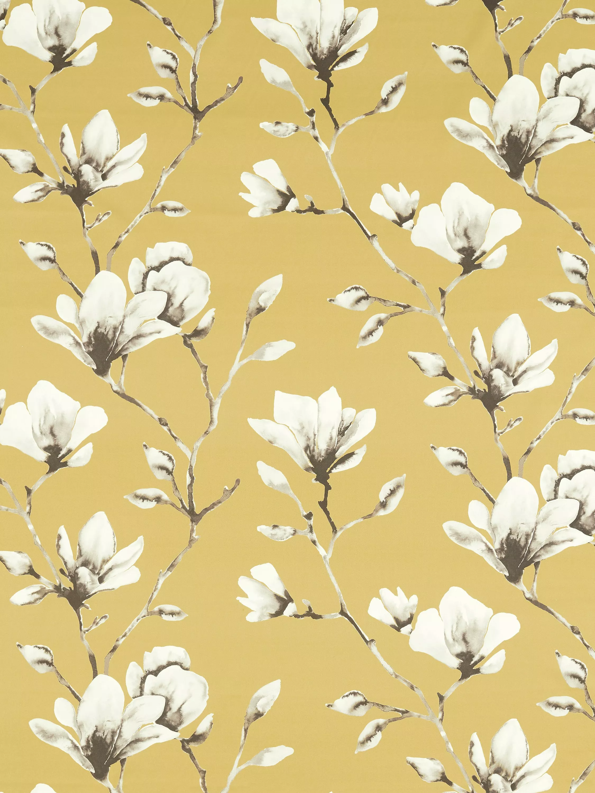 A printed cotton satin featuring painterly magnolia flowers on branches.