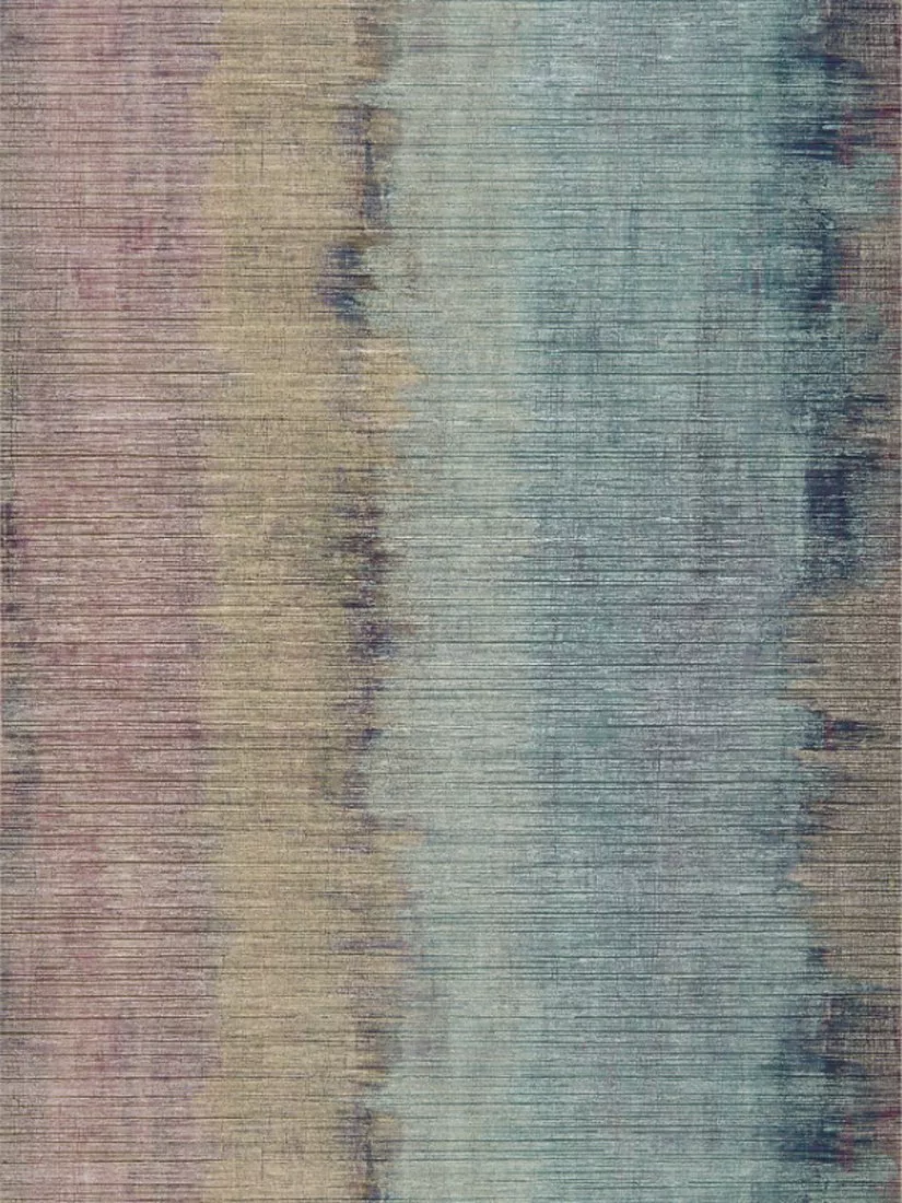 Wallpaper with an overall effect of a "raw" stripe which reveals pops of intense colour underneath.