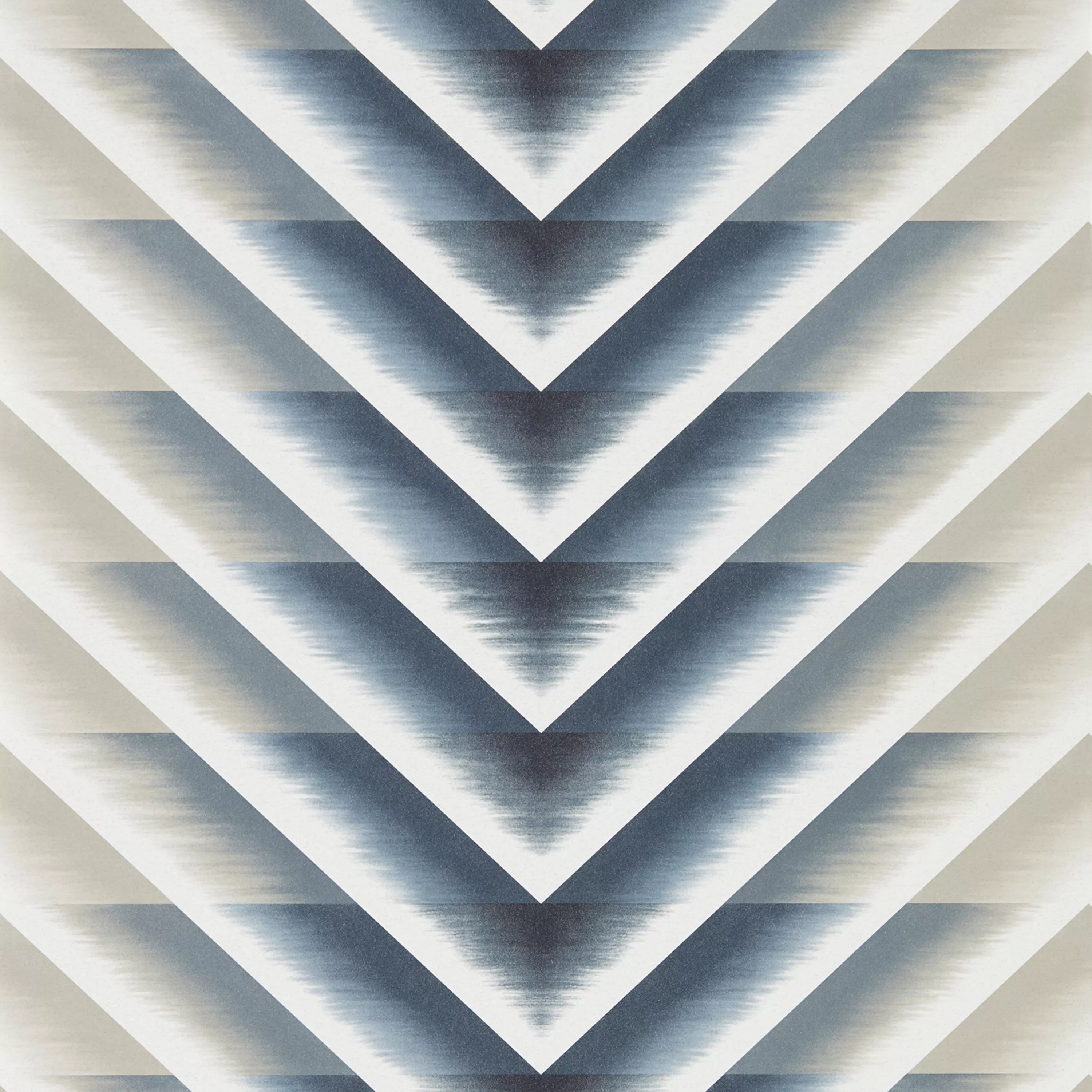 A large scale statement wallpaper with chevrons gradating in colour and depth.