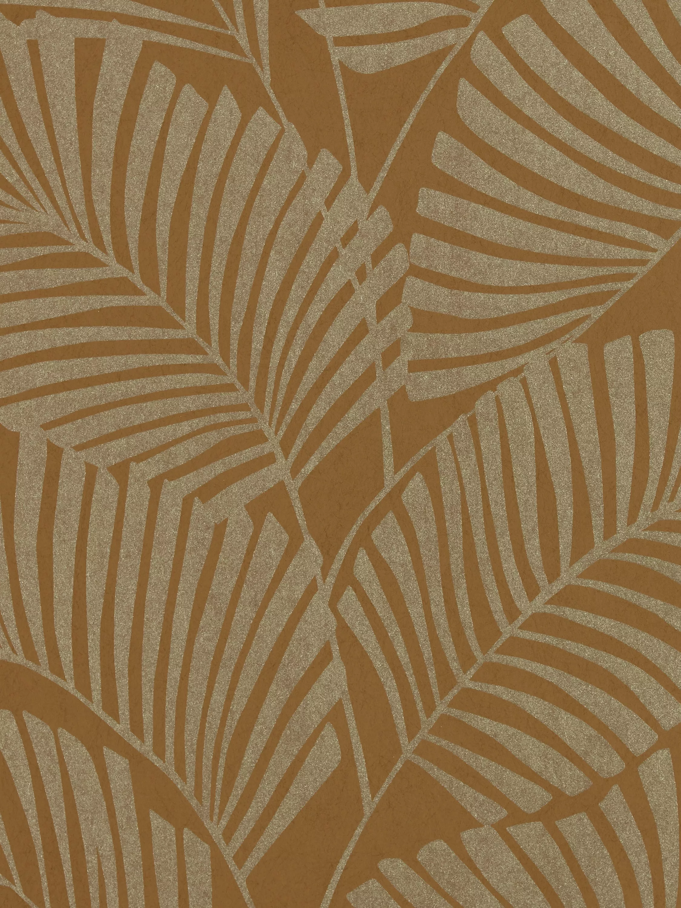 Mala is a bold, confident design which plays on contrasting elements of matte and shine, with a chalky ground against striking, stylised palm leaves.